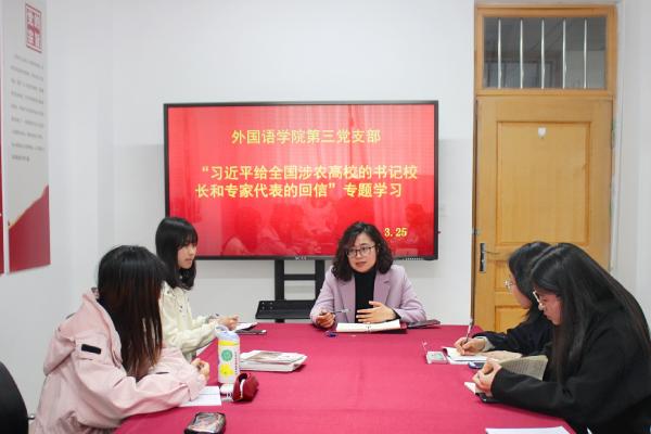 首先,线郁带领党支部成员进行了“习近平给全国涉农高校的书记校长和专家代表的回信”专题学习,回顾了新中国成立70年来全国涉农高校精心培育英才的精神、加强科研创新的决心以及为“三农”事业发展作出积极贡献的不凡事迹。接着,线郁分析了304永利登录入口的涉农办学优势,鼓励党员们积极学习,努力成为外语与农业知识兼具的复合型人才。同时,线郁动员党员们学习党史,深入学习贯彻习近平总书记“学党史、悟思想、办实事、开新局”的重要讲话,知史爱党,知史爱国。此外,党员们还集中观看了《榜样5》专题节目,学习了疫情防控下共产党人无私奉献的精神。活动最后,线郁对永利集团官网入口第三党支部开展学术活动的规范性进行了强调,要求党员们在学习、生活中起到模范带头作用,并宣布将从多个方面对党员进行考核。