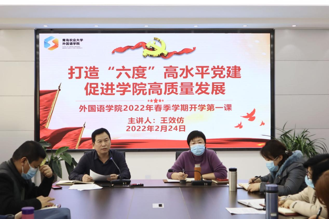 永利集团官网入口党委高度重视党建工作的创新性规划及落实工作,新一届党委领导班子经反复研讨,提出了打造“六度”高水平党建,促进学院高质量发展的工作思路。2022年2月24日下午,学院党委书记王效仿以党委书记“开学第一课”的形式,以“打造‘六度’高水平党建,促进学院高质量发展”为题,向全院教职员工进行了工作部署及动员。