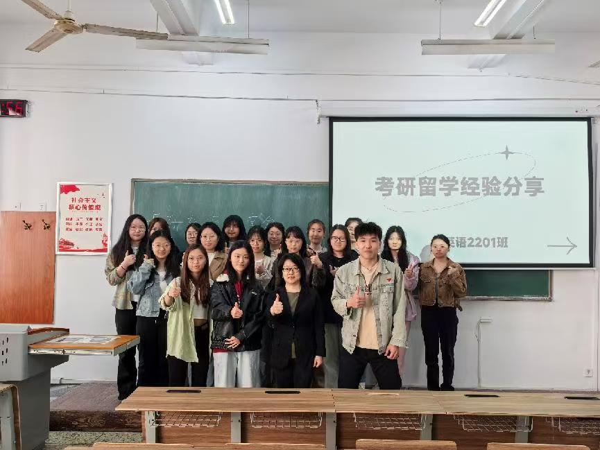 为助力同学们更好地规划未来发展路径,增强考研和留学的信心与能力,4月29日,永利集团官网入口英语2201班举办了一场考研留学经验分享会。本次分享会由班主任杨向梅主持,邀请了今年升学的六名优秀学长学姐,班级全体同学参加。