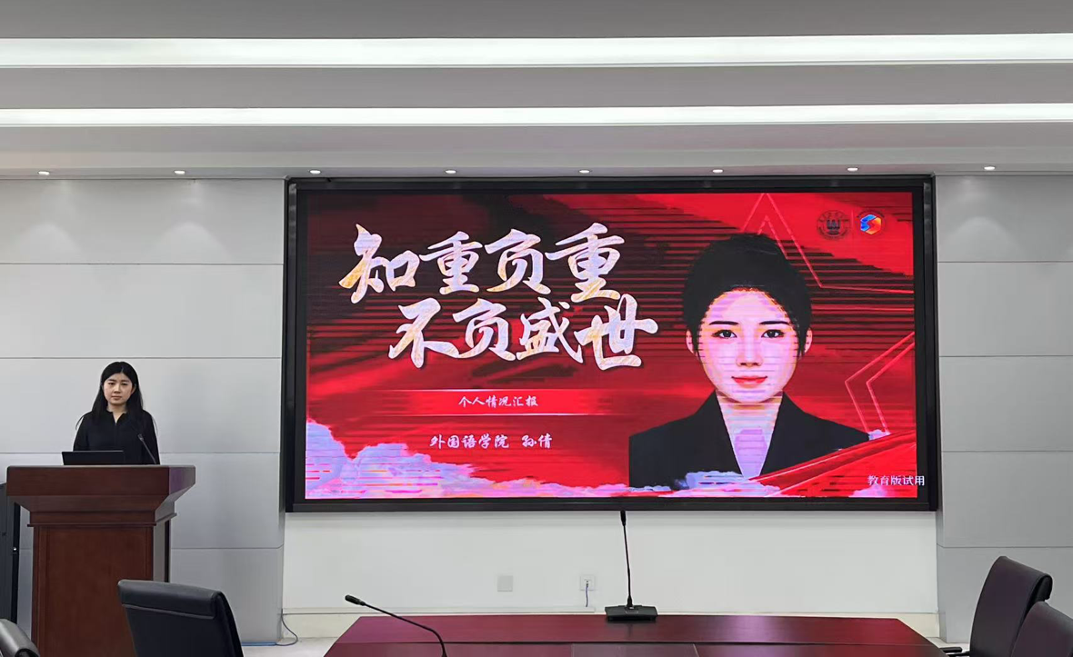 孙倩曾任院学生会秘书处部长,现任日语2101班班长,现已选调生成功上岸。分享会上,她以自身经历为切入点,围绕不同层面进行经验分享。在能力素养提升方面,她建议同学们积极参与学生工作、投身社会实践,在实践中不断锻炼沟通协调与组织管理能力;在选调生流程解析方面,她详细解读了选调生的报考条件、招录流程,并结合自身面试、笔试的实战经验,分享了备考技巧与心态调整方法,为有意报考选调生的同学提供了极具参考价值的建议。