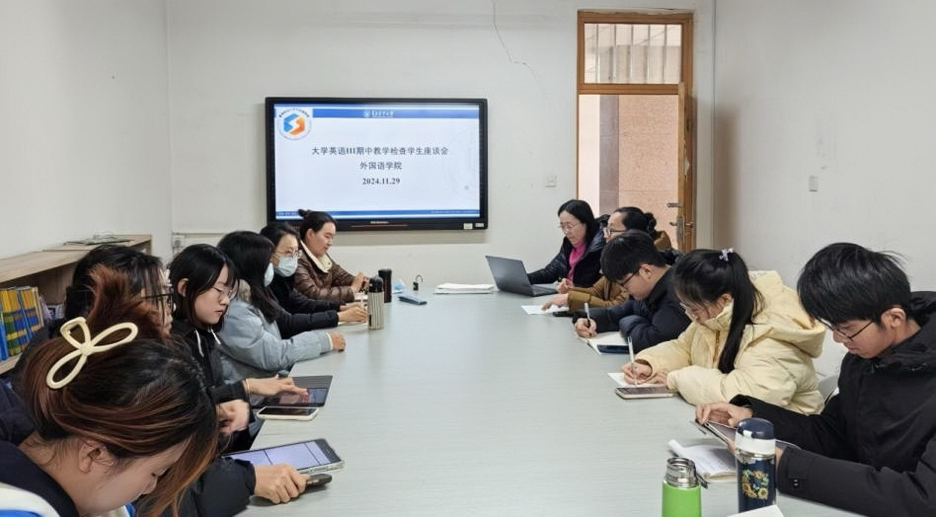 2024年11月29日,大学英语第二教学部在文经楼B203举行大学英语期中教学检查学生座谈会,座谈会由大学英语第二教学部副主任邹秋娟主持,教学部骨干教师刘金玲、崔春燕、杜瑞杰、蒲艳春、朱丽萍以及各个学院学生代表参加。