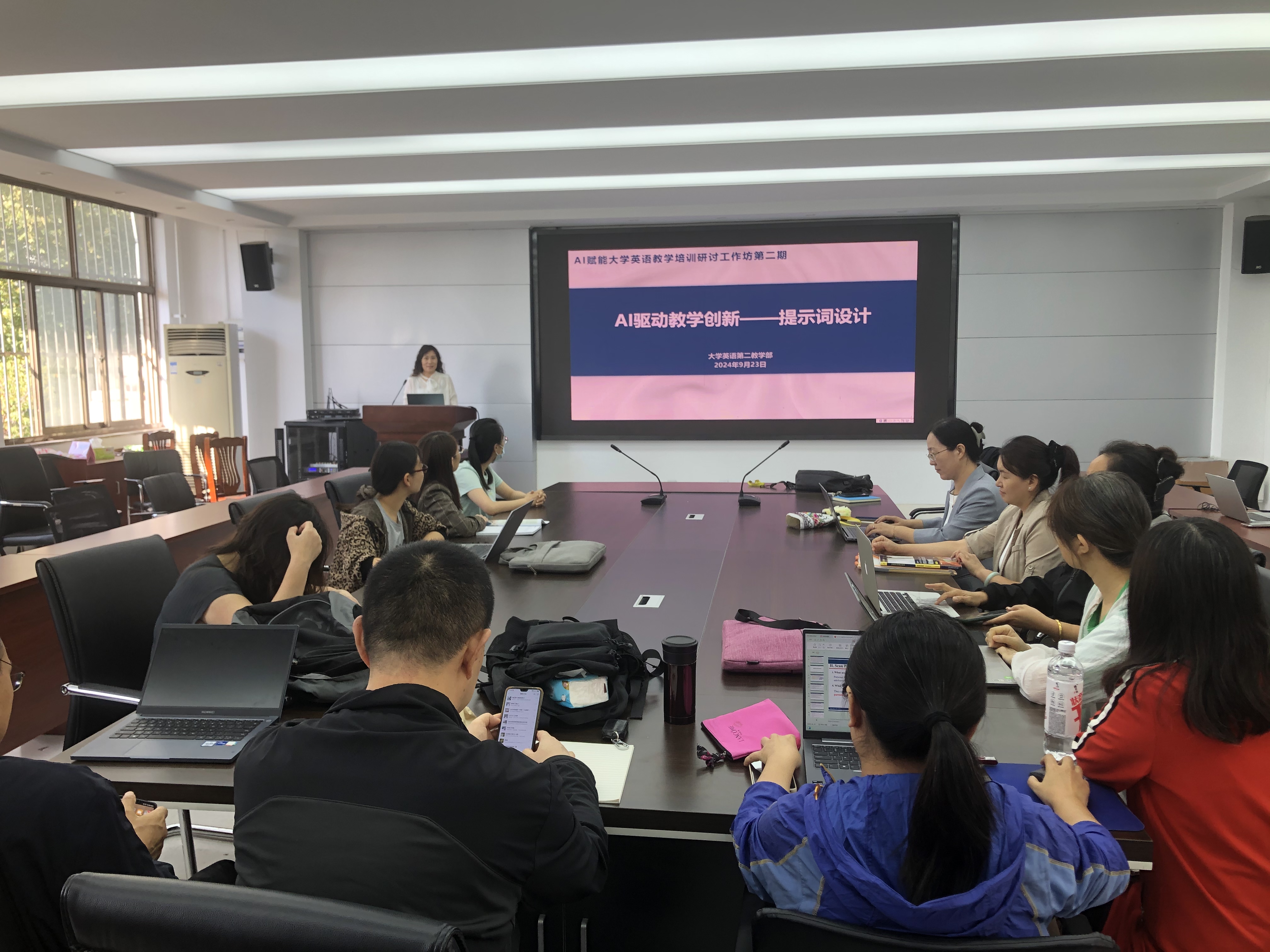 为扎实推进国家教育数字化战略行动,将人工智能技术新优势转化为教学改革发展的新动能,积极探索“AI+教育”在专业与课程建设中的深度融合路径,2024年9月23日永利集团官网入口大学英语第二教学部在文经楼C220进行AI赋能大学英语教学培训研讨工作坊,本期活动主题为AI驱动教学创新——提示词设计,由大学英语第二教学部主任聂庆娟主持并带领全体教师进行AI实操训练。