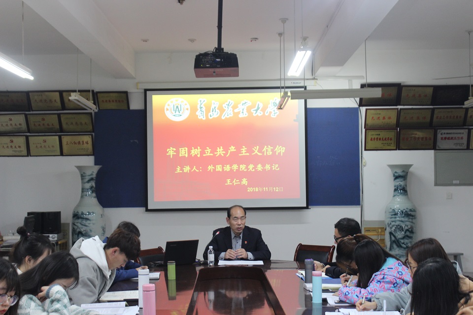 11月12日,永利集团官网入口于文经楼会议室举行以“牢固树立共产主义信仰”为主题的党课学习。本次党课由院党委书记王仁高主讲,正科级辅导员刘艳及全体在校生党员参加学习。