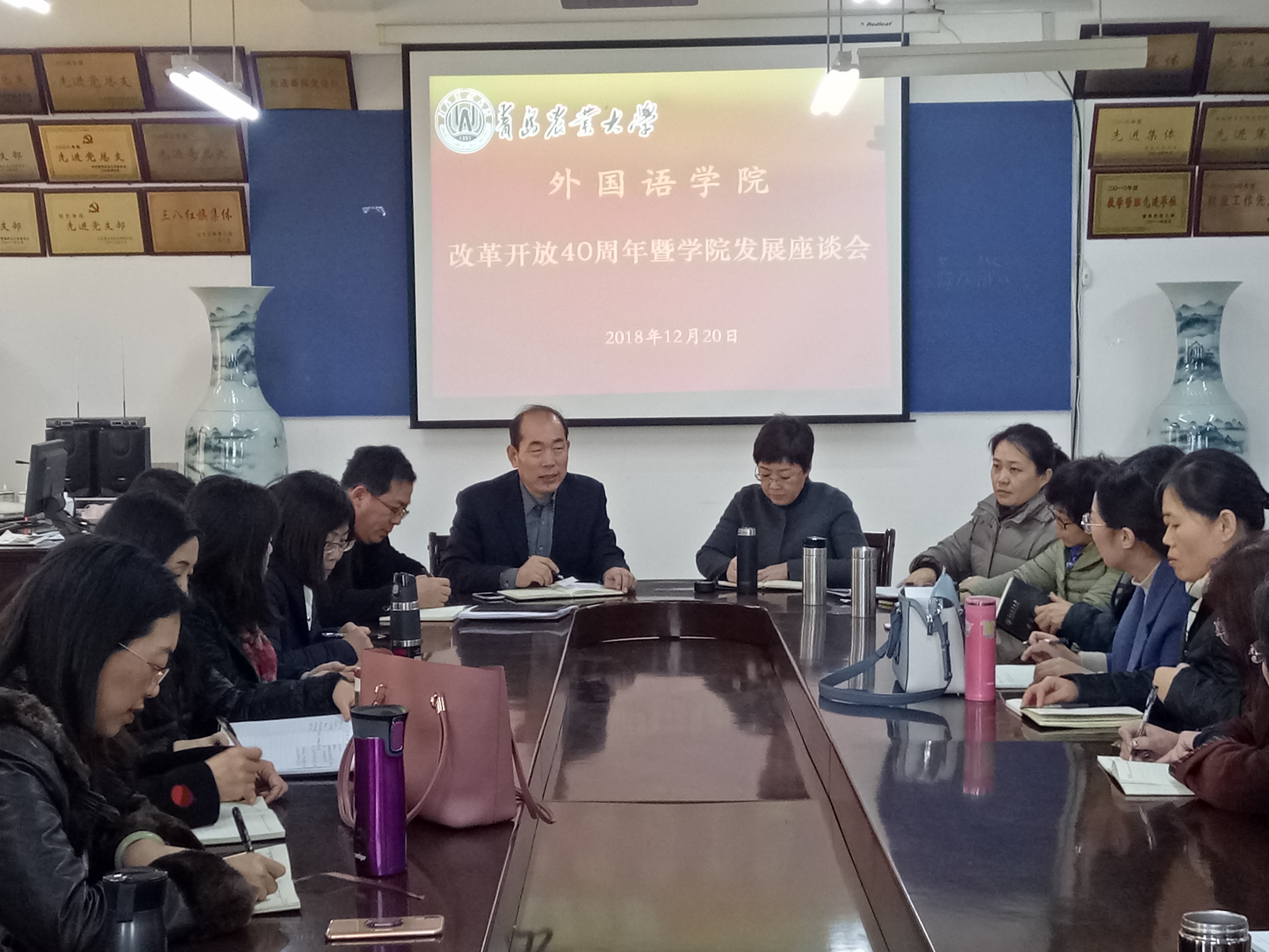 12月20日,永利集团官网入口于文经楼会议室召开改革开放40周年暨学院发展座谈会。学院党政领导出席,各教研室主任和专业负责人、老教师代表、中青年教师代表共二十余人参加。座谈会由党委书记王仁高主持。