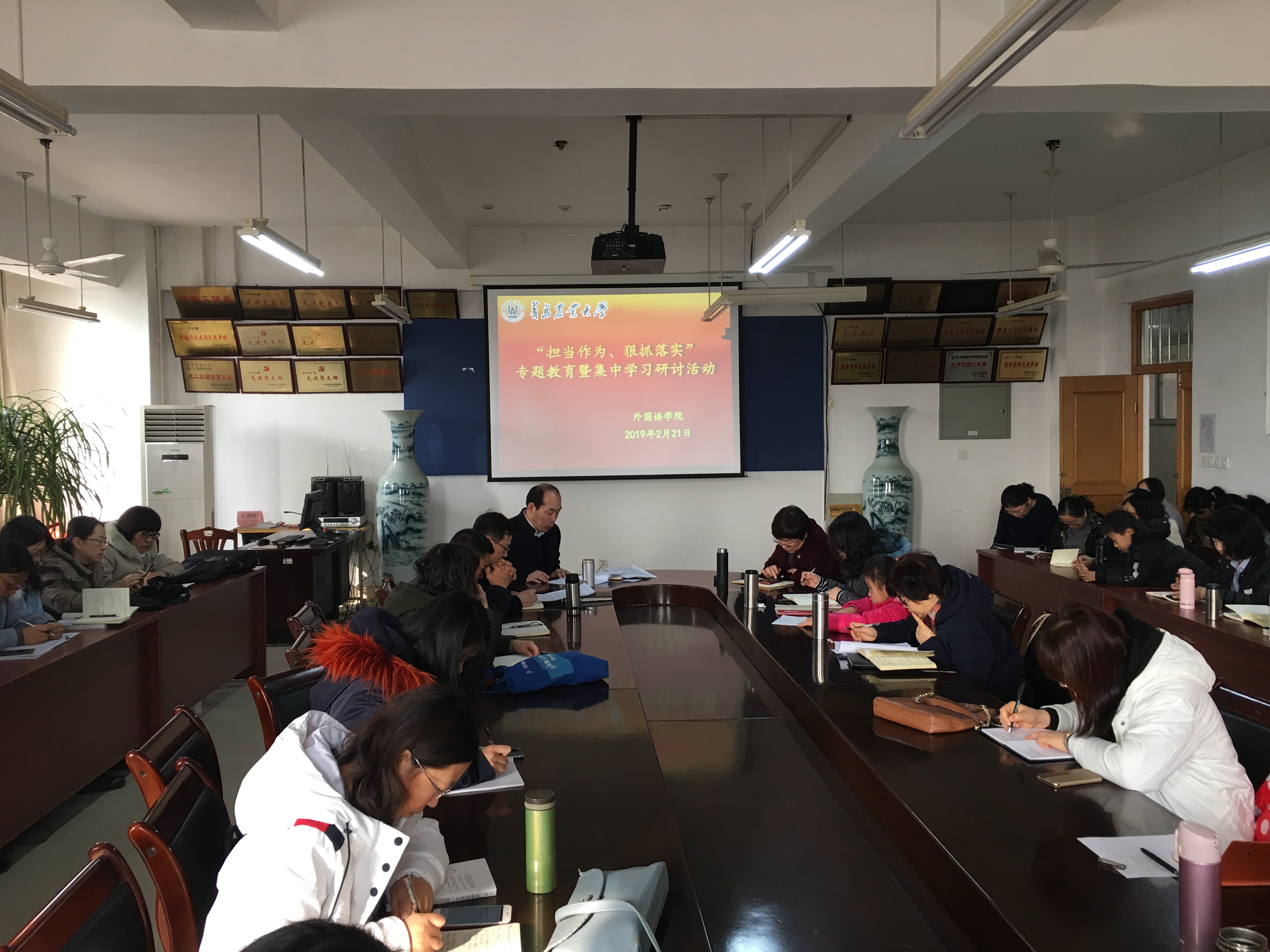 2月21日,永利集团官网入口在文经楼C220开展“担当作为、狠抓落实”专题教育暨集中学习研讨活动。学院党政领导出席会议,全体教职工参加学习交流,会议由党委书记王仁高主持。