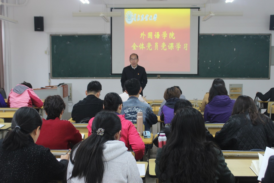4月28日,永利集团官网入口在文经楼C214教室举行学习《中共中央关于加强党的政治建设的意见》(以下简称《意见》)专题党课,党课由学院党委书记王仁高主讲,全体师生党员参加学习。