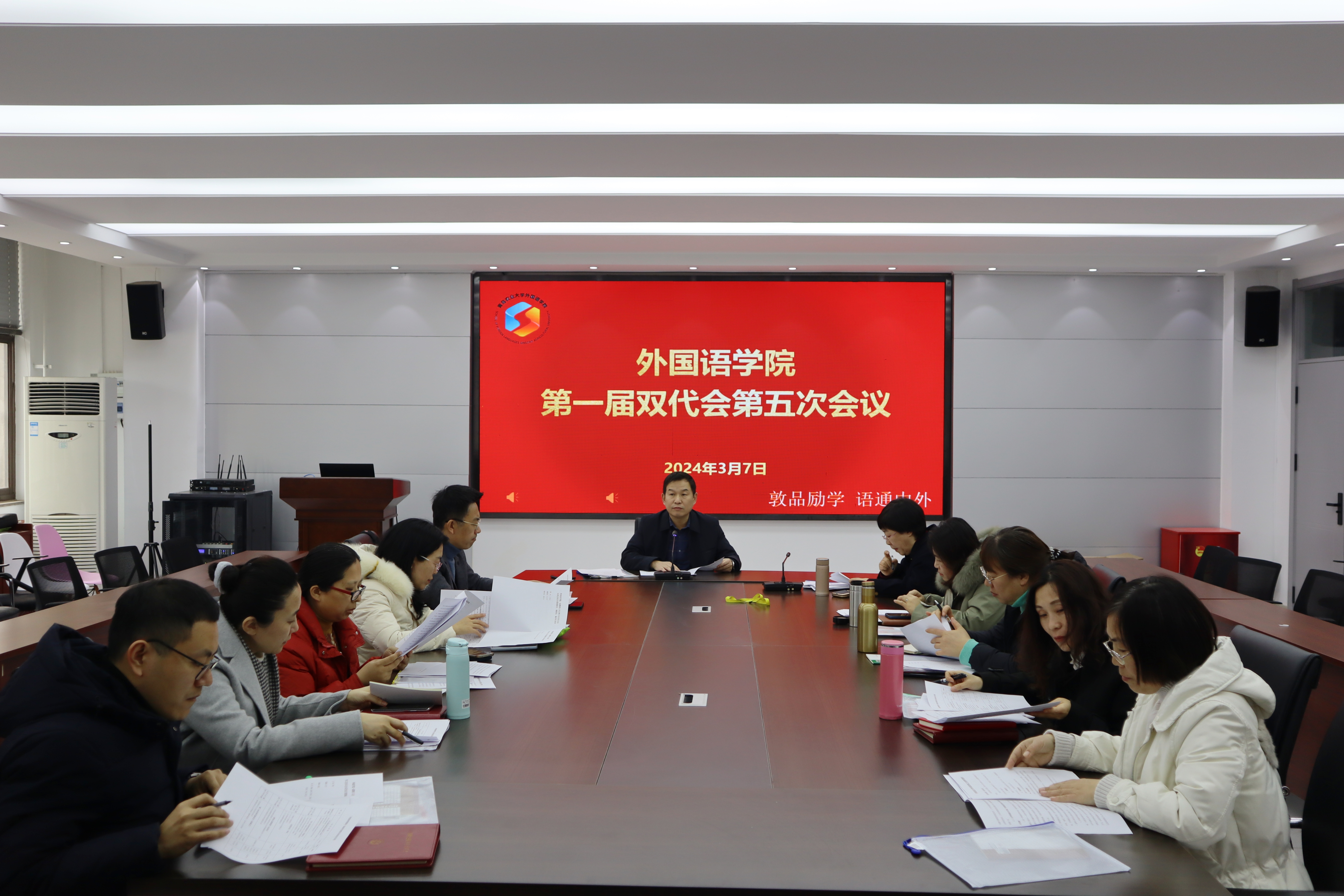 3月7日,永利集团官网入口一届双代会第五次会议在文经楼C220召开。学院党委书记王效仿主持会议,学院领导班子成员及全院教职工代表、工会会员代表参加会议。