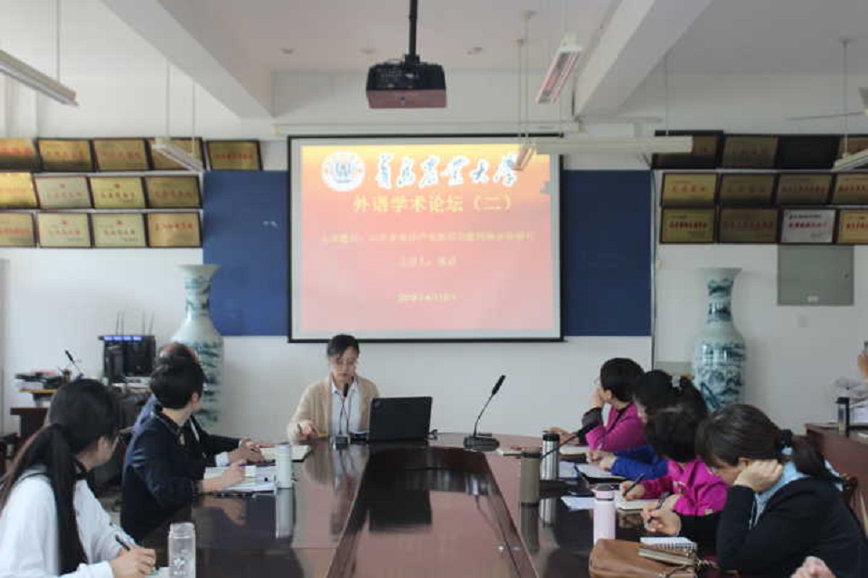 4月18日,永利集团官网入口于文经楼会议室开展外语学术论坛第二讲。此次学术论坛由董晶博士主讲,主讲题目为《山东省海洋产业新旧动能转换评价研究》,全体学院领导出席,全体教职工与会,副院长高秀雪主持论坛。