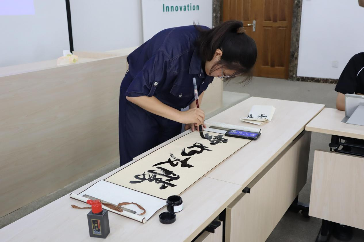 活动现场,中国传统文化体验环节成为最大亮点,茶艺、琵琶曲艺、英文歌曲演唱、书法展示和传统线装书制作等项目依次展开。茶艺展示环节,身着素雅汉服的工作人员行云流水般演示着温杯、投茶、注水、分茶的传统流程,在茶香袅袅中,留学生们仔细观摩每一个细节,接过茶杯轻啜细品,在甘醇茶汤里触摸东方生活美学。琵琶演奏者指尖轻挑,悠扬旋律流淌全场,中外青年屏息聆听,让传统民乐的韵味在空气中交融。富有感染力的英文歌曲演唱,成为两国青年情感共鸣的纽带,为这场文化之约增添了青春活力。书法展示环节让留学生们在笔墨之间感受中国汉字之美,传递了中国文化深厚底蕴。线装书制作环节中,中外学生分组协作,折页、对齐、穿线、装订,共同完成一本线装书,最后共同加盖“福”字印章,将这份满载情谊的手作成果作为纪念珍藏。