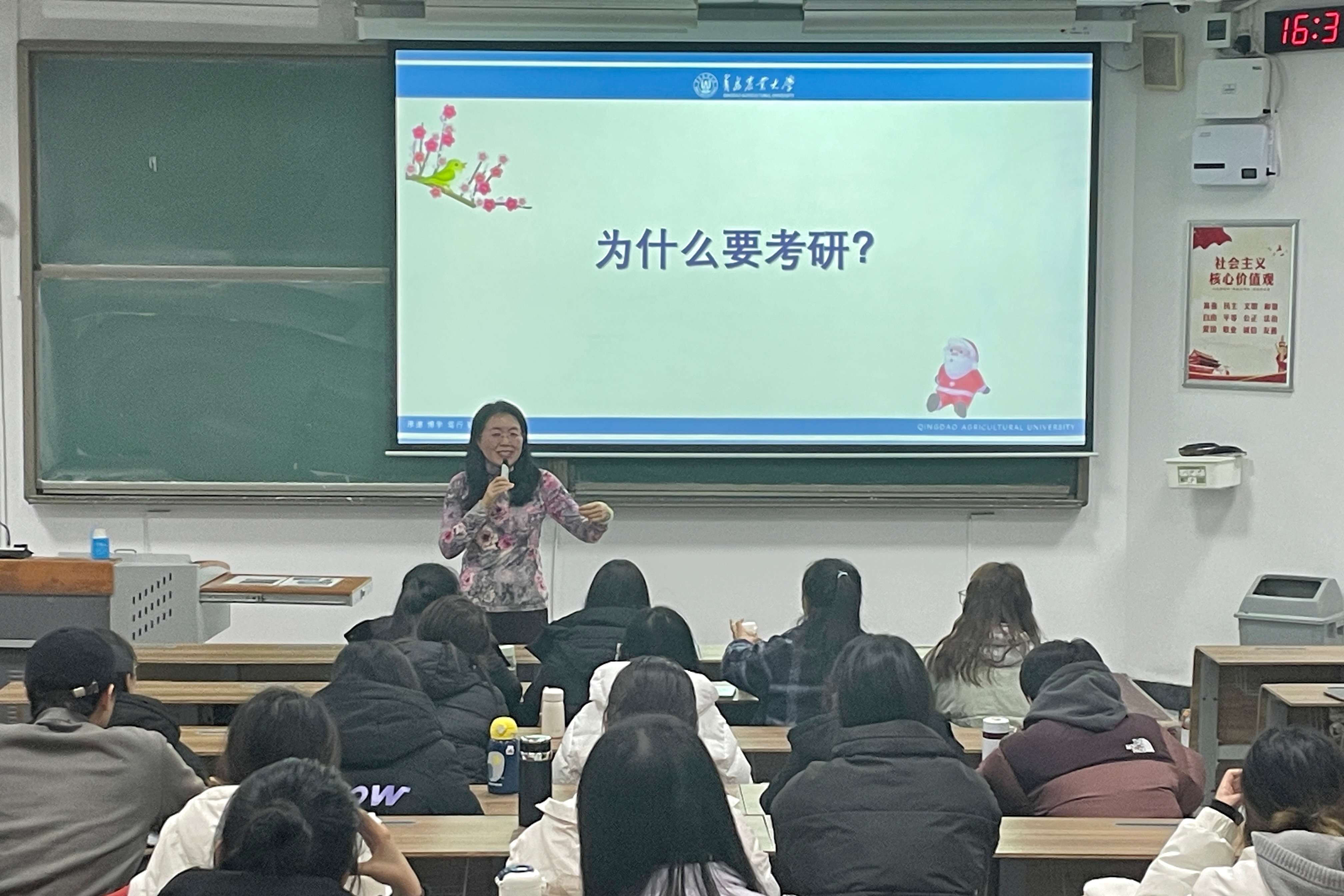 徐玉凤以历年优秀学姐学长为例,从“为什么要考研”入手,讲述了精彩的考研故事,鼓励同学们认真备战考研,合理制定学习计划,重视每一门科目。她强调考研是一个持久的过程,希望同学们充实愉快地过好未来的一年,并针对同学们提出的问题进行了一一解答。