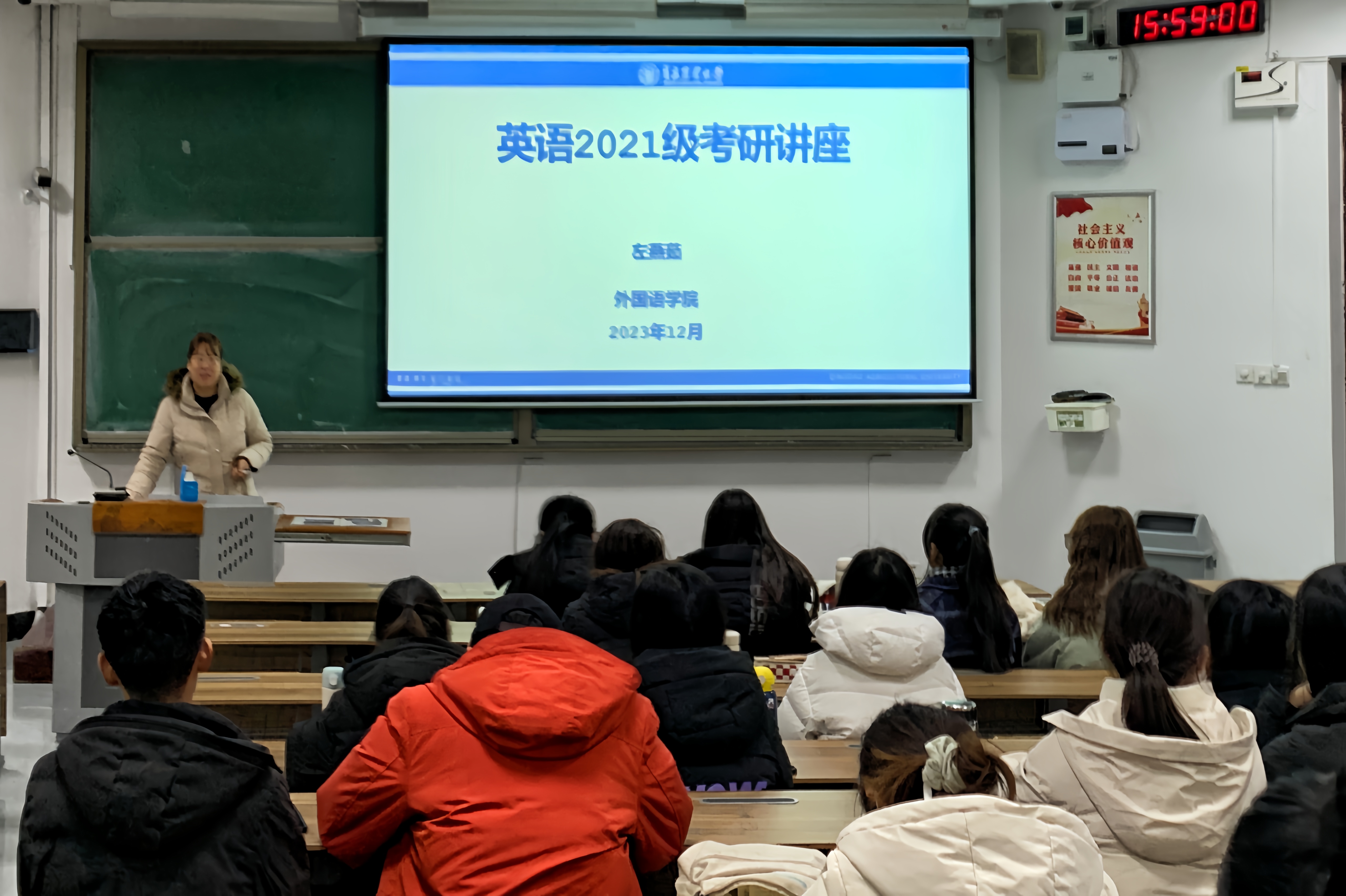 永利集团官网入口英语系于12月15日在教学楼B102召开英语系大三学生考研动员会。会议由英语系主任徐玉凤、英语系副主任兼校企合作方向负责人左燕茹主讲,英语系2021级全体学生参加。