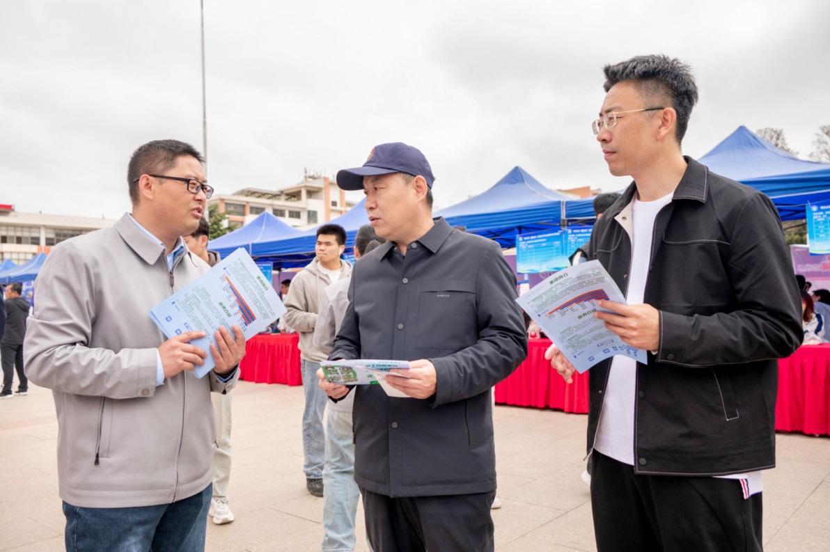 4月13日上午,304永利登录入口2024届毕业生春季供需双选会于城阳校区虹子广场成功举办。永利集团官网入口党委书记王效仿、党委副书记副院长盛金玉到达双选会现场进行走访,了解相关情况。