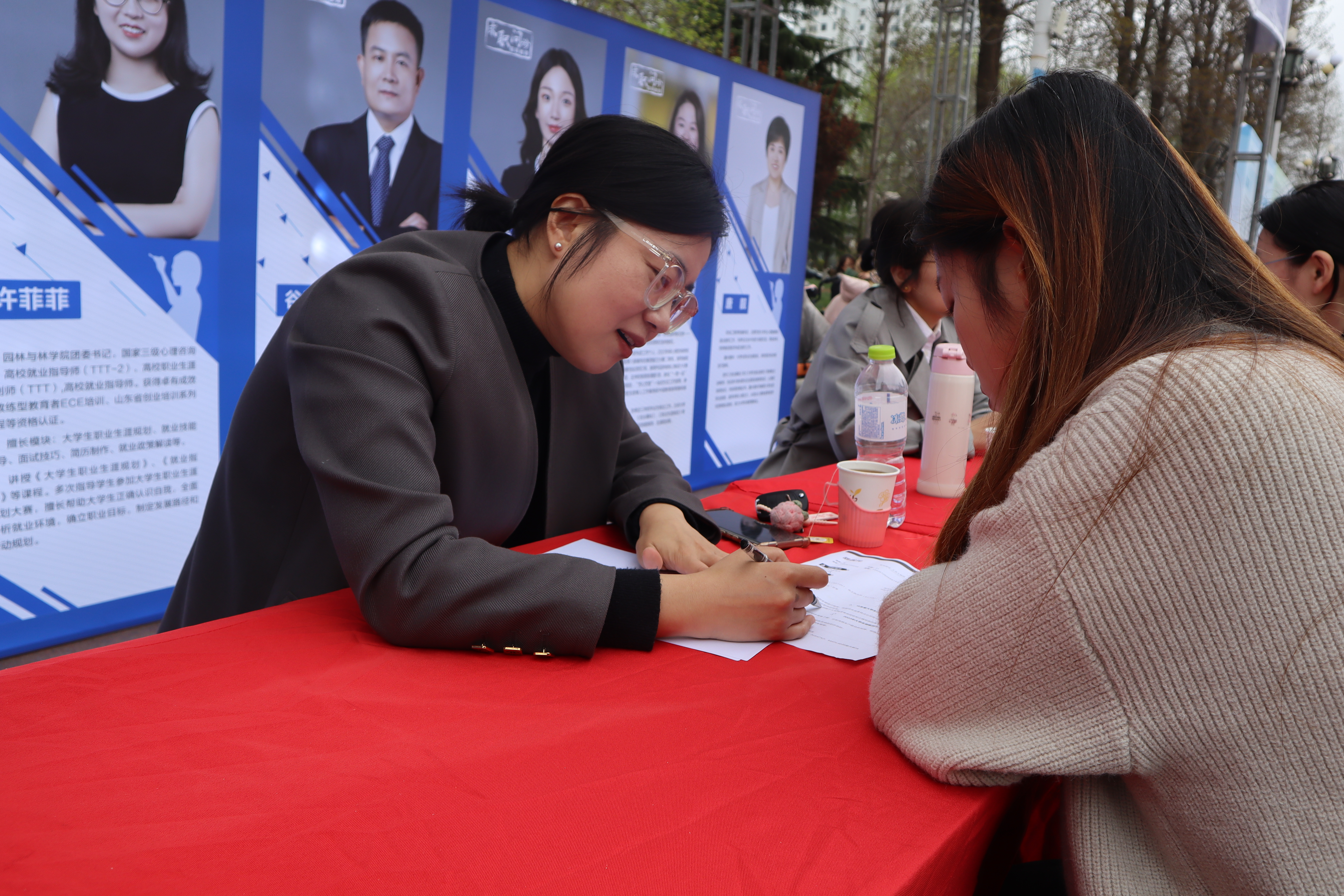 学院团委书记线郁作为双选会的简历问诊大使,为参会毕业生们提供专业意见与指导方案,帮助毕业生与用人单位构建精准有效的供需对接。