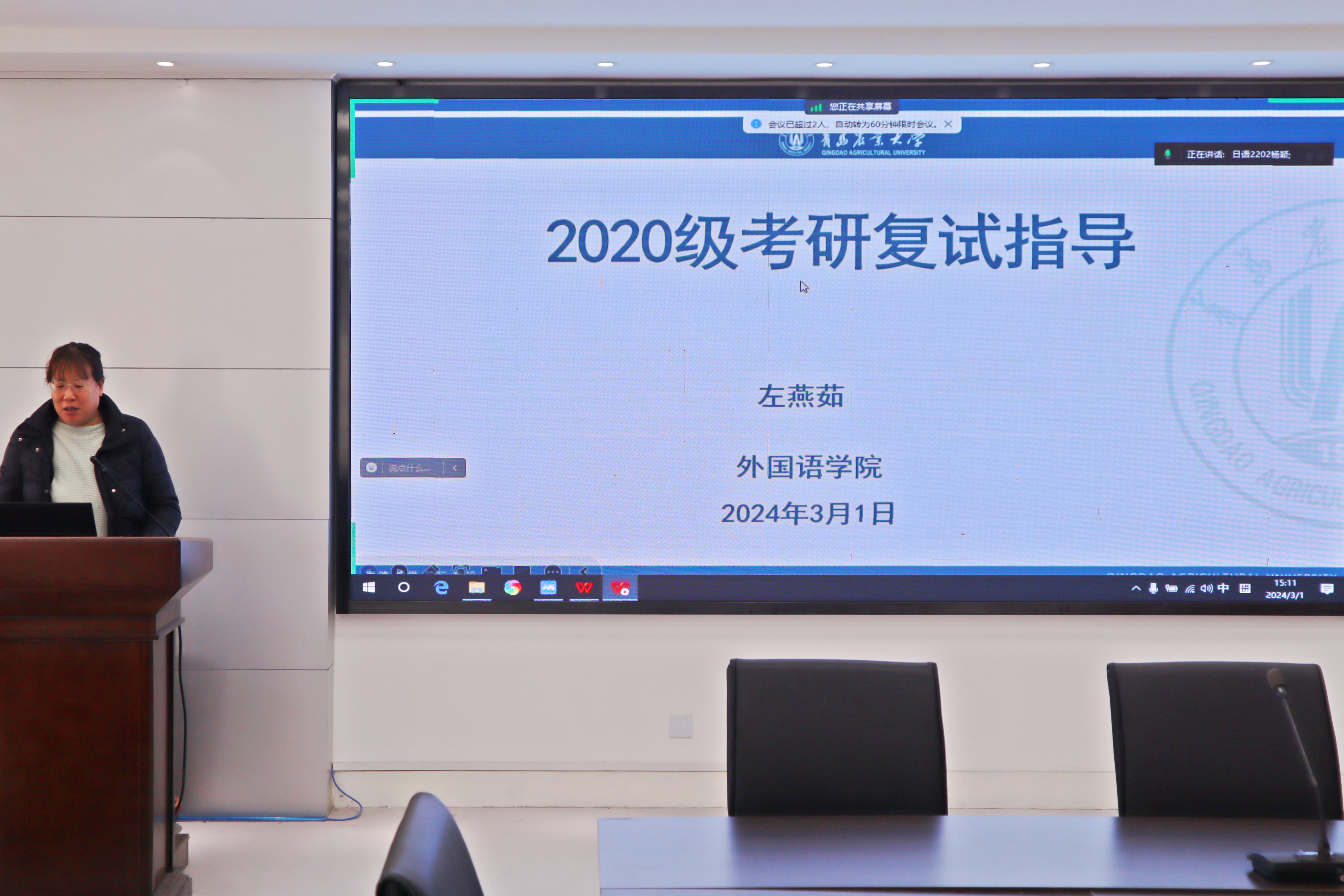 为全面助力2024届毕业生考研升学,3月1日,永利集团官网入口于文经楼C220会议室举办考研复试指导会。会议采用线上线下相结合的方式,由英语系系主任徐玉凤、英语系副主任兼跨境电子商务方向负责人左燕茹、团委书记线郁主讲。学院辅导员仇文峰、大四考研学生参会。