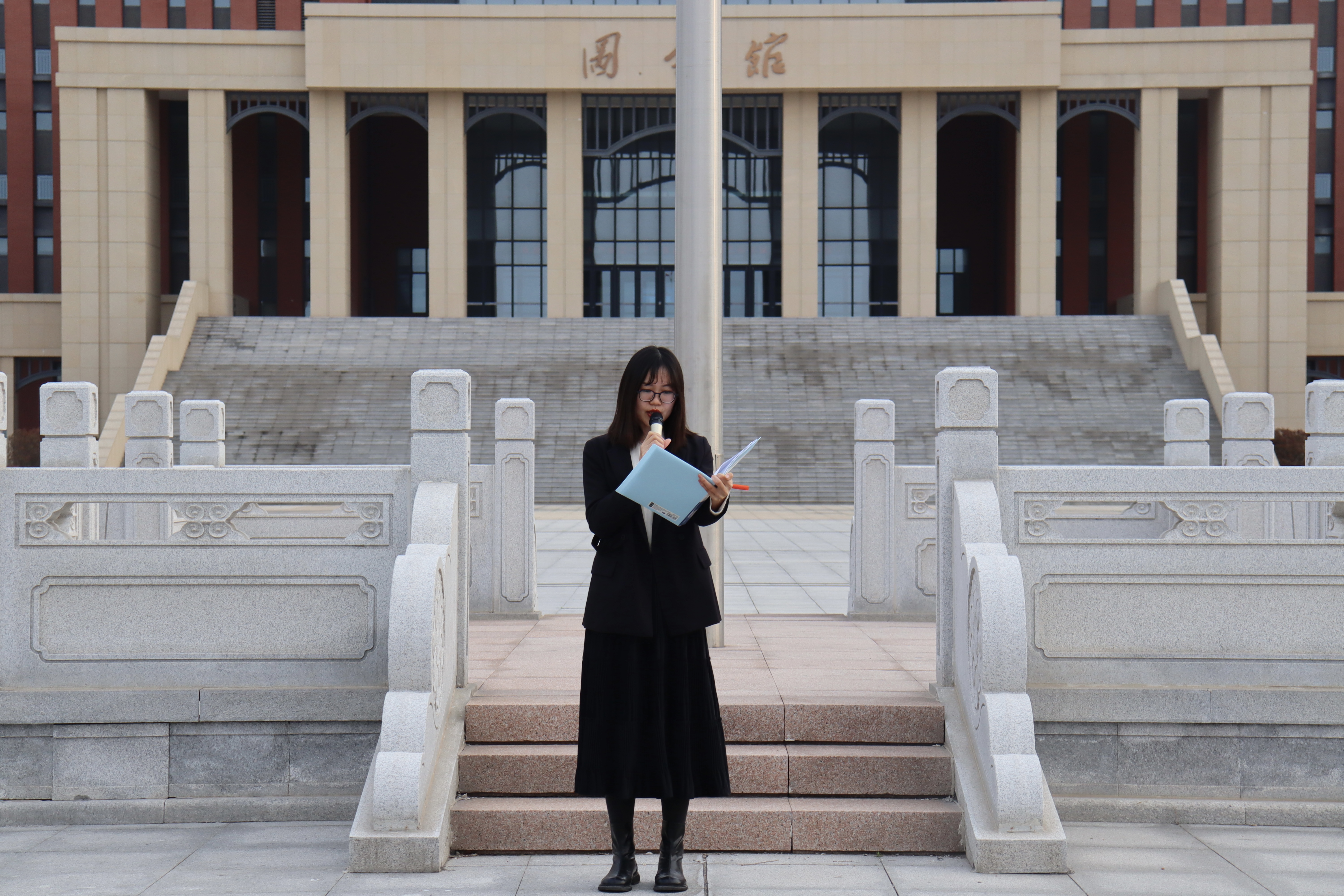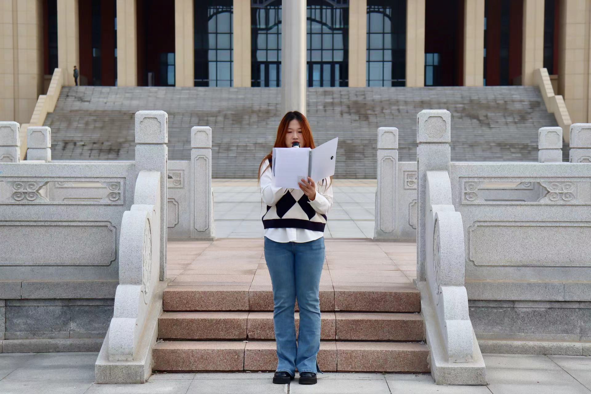 在城阳校区,学院辅导员王洋洋以“立志当先、笃行致远”为主题发表演讲,阐述了“立大志”和“笃行践”的内涵和重要性,强调立大志、笃行践不仅是每个人的责任和义务,更是实现个人价值、推动社会进步的重要途径。优秀学生代表王岩作国旗下演讲,分享自身的大学成长故事。王岩围绕竞赛和实习实践两方面阐述了大学心路历程和未来发展方向。他强调我们每一个人都是独立而独特的存在,每个人都应该真正明白自己想要的是什么,从而朝着那个目标不断努力前行。