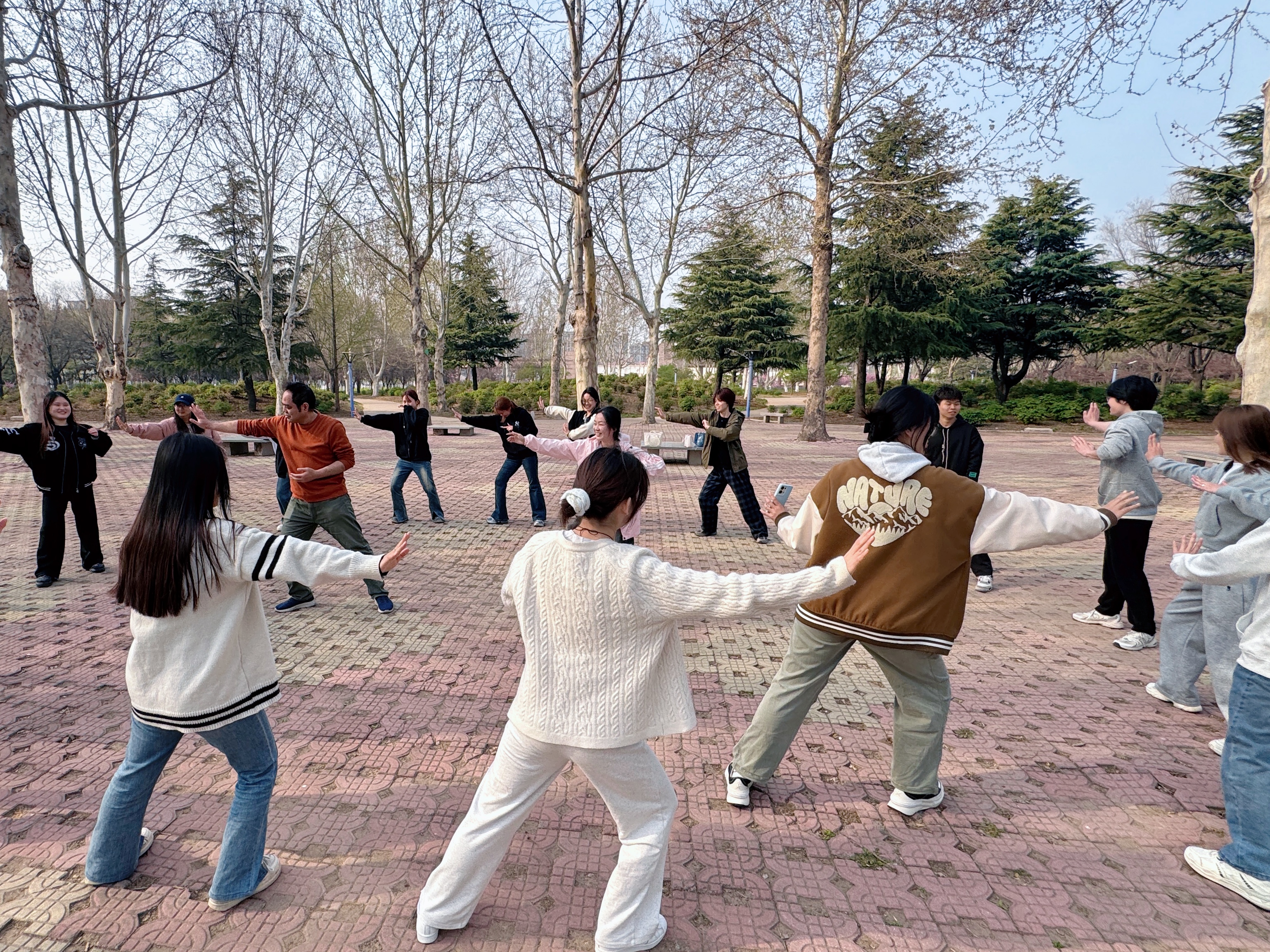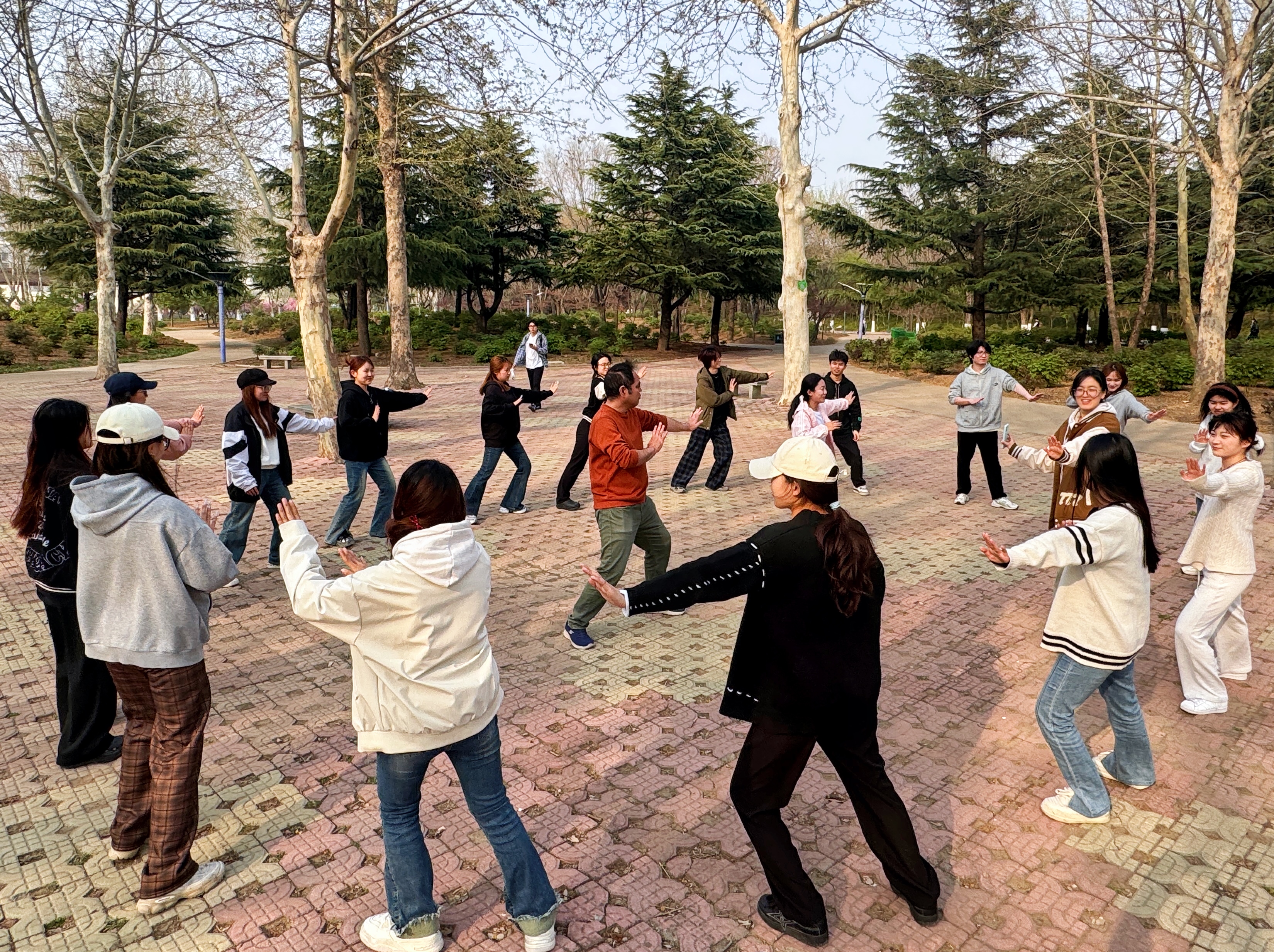 4月8日,永利集团官网入口日语2202班在班级两委会的组织下,举办了一场主题为“携手共练八段锦,锦韵飞扬健体魄”的特色早操活动。日语专业外教比嘉正尚受邀参与,班级23名同学积极响应,通过传统功法的一招一式,体验身心调和之美,以实际行动践行“健康中国”理念。