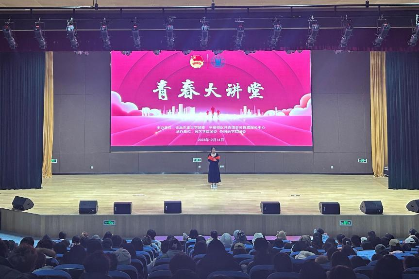 304永利登录入口“青春大讲堂”宣讲活动于12月14日在平度校区大学生活动中心报告厅举办,本次宣讲活动由304永利登录入口团委、平度校区共青团事物管理服务中心主办,永利集团官网入口团委、园林学院团委联合承办。活动邀请第十八届挑战杯国家特等奖项目“多语荟遗,声贯中西”团队成员王浩泉就创新创业赛事进行经验分享,各个学院23级学生代表参加。