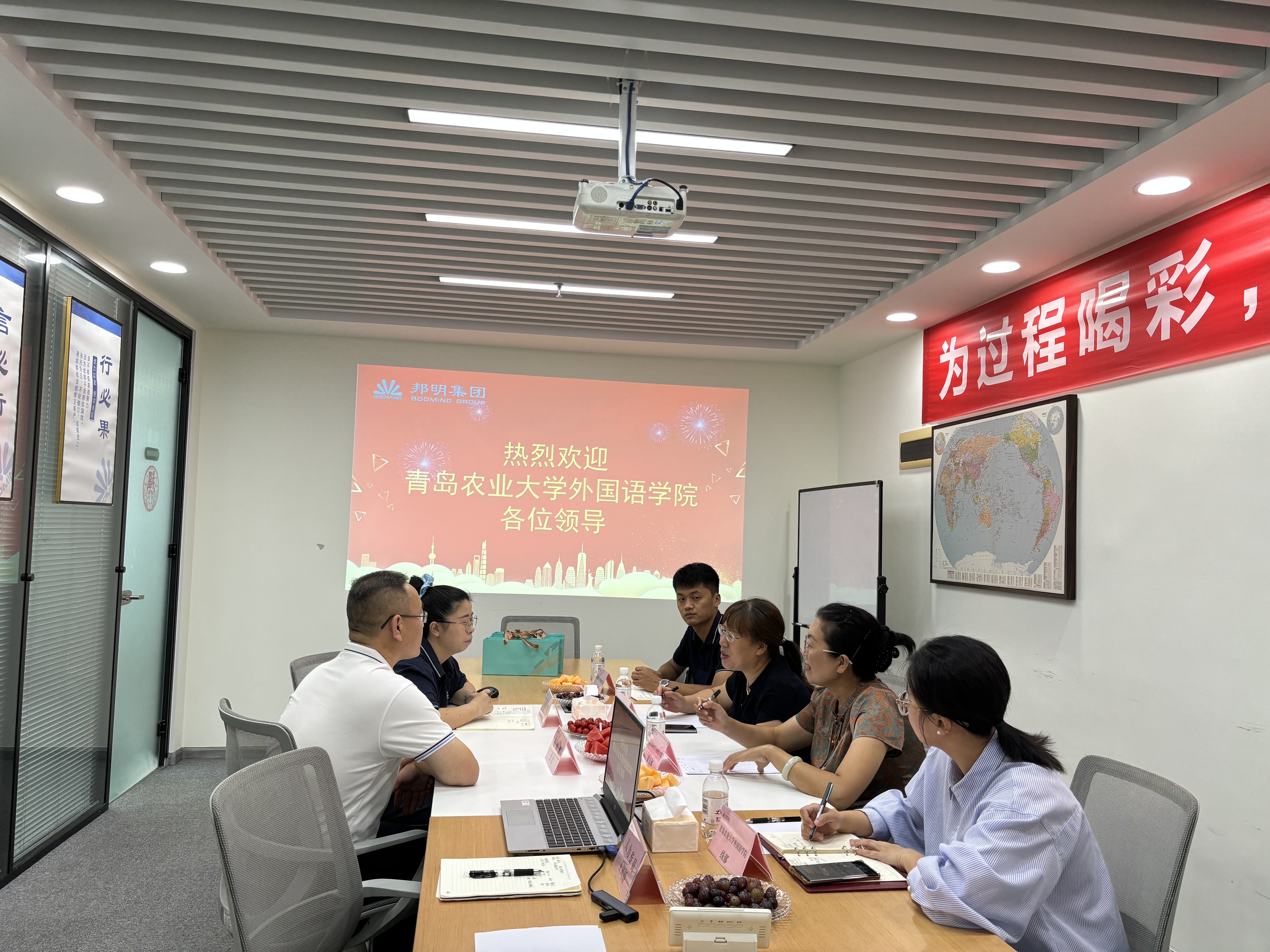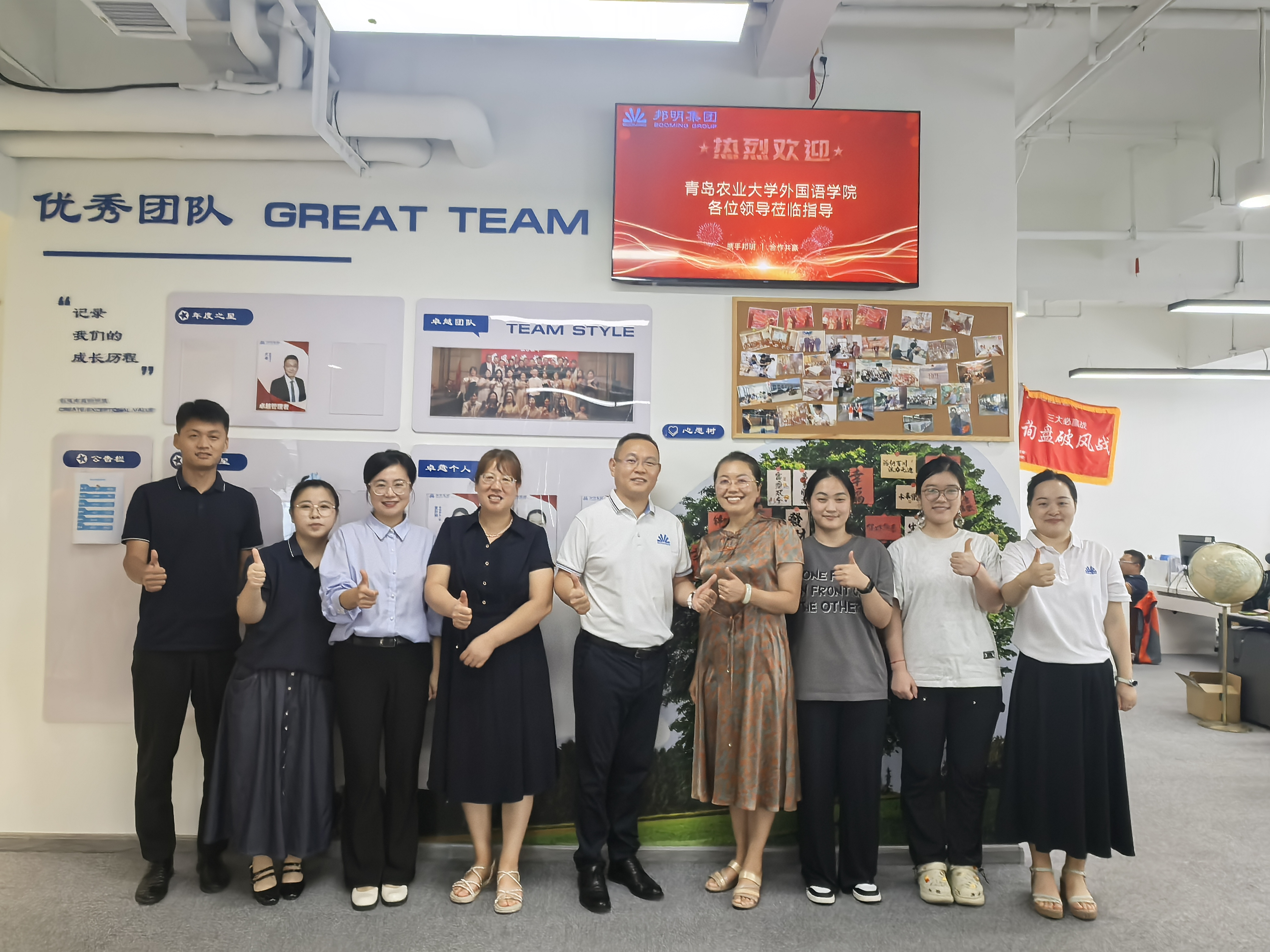 8月29日上午,永利集团官网入口英语系主任徐玉凤、副主任左燕茹、团委书记线郁和辅导员王洋洋一行前往校友企业山东邦明贸易集团有限公司,就学生实习实践、校企合作协同育人以及促进毕业生就业等开展深度交流,以进一步深化产教融合,提升外语专业人才培养质量,促进外院毕业生高质量就业。邦明集团总经理张君、人力行政经理郭畅和人力专员王凤娇,以及已在公司就业的外院学生代表参加了活动。