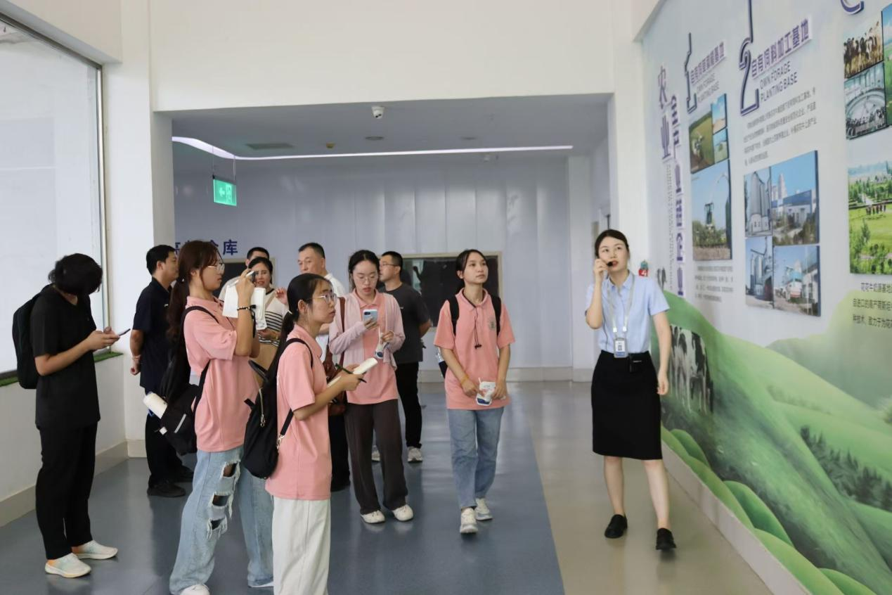 实践团首先探访了花花牛乳业集团,参观并了解到其半智能化的乳制品生产线及公司的发展进程。在企业讲解员的介绍和与企业负责人的沟通交流中,成员们了解到花花牛在产品质量把控和种类创新方面的举措和集团的近期愿景。
