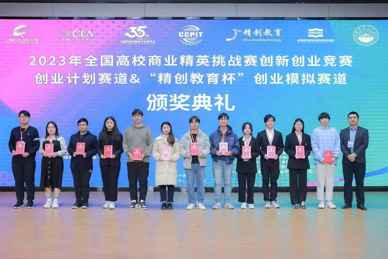 此次大赛吸引了来自全国29个省、自治区、直辖市的500余所院校报名,共计3.5万余人参与,参赛队伍达1400余支。经过竞赛前期层层选拔与淘汰,由李杨金淇、张家辉、李尚伟组成的“顶峰相见”队成功晋级决赛,与来自全国50余所高校的60余支团队按赛道竞技比拼,经过激烈角逐,最终获得优胜奖,并成功入围2024年内地与港澳地区数字经济创新创业竞赛。