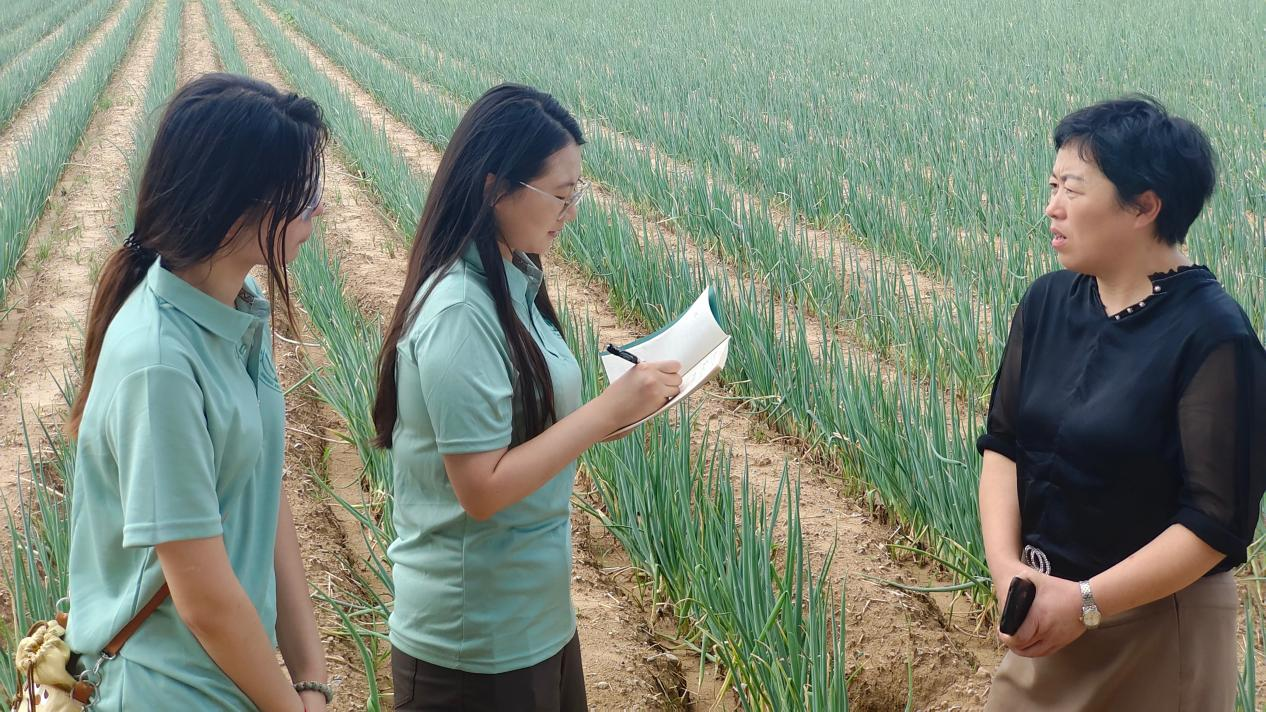 下午,团队来到乔大姐大葱种植基地,了解章丘大葱的种植过程与售卖情况。乔大姐表示,种植大葱极为艰辛,每天清晨就要下地劳作,即便在三四十度的高温天气下,许多七十余岁的老人依然坚持在田间忙碌。她坦言,最艰难的并非辛劳,而是面对自然灾害和市场波动的无助:“大风、暴雨都会影响收成,有一年,明知要赔钱,也舍不得把葱烂在地里……”这些真实的故事深深触动了团队成员,成员们深刻认识到,讲好中国农遗故事,不仅要传播其背后的文化内涵,更应发挥自身的语言优势,积极探索搭建农产品产销对接的桥梁。