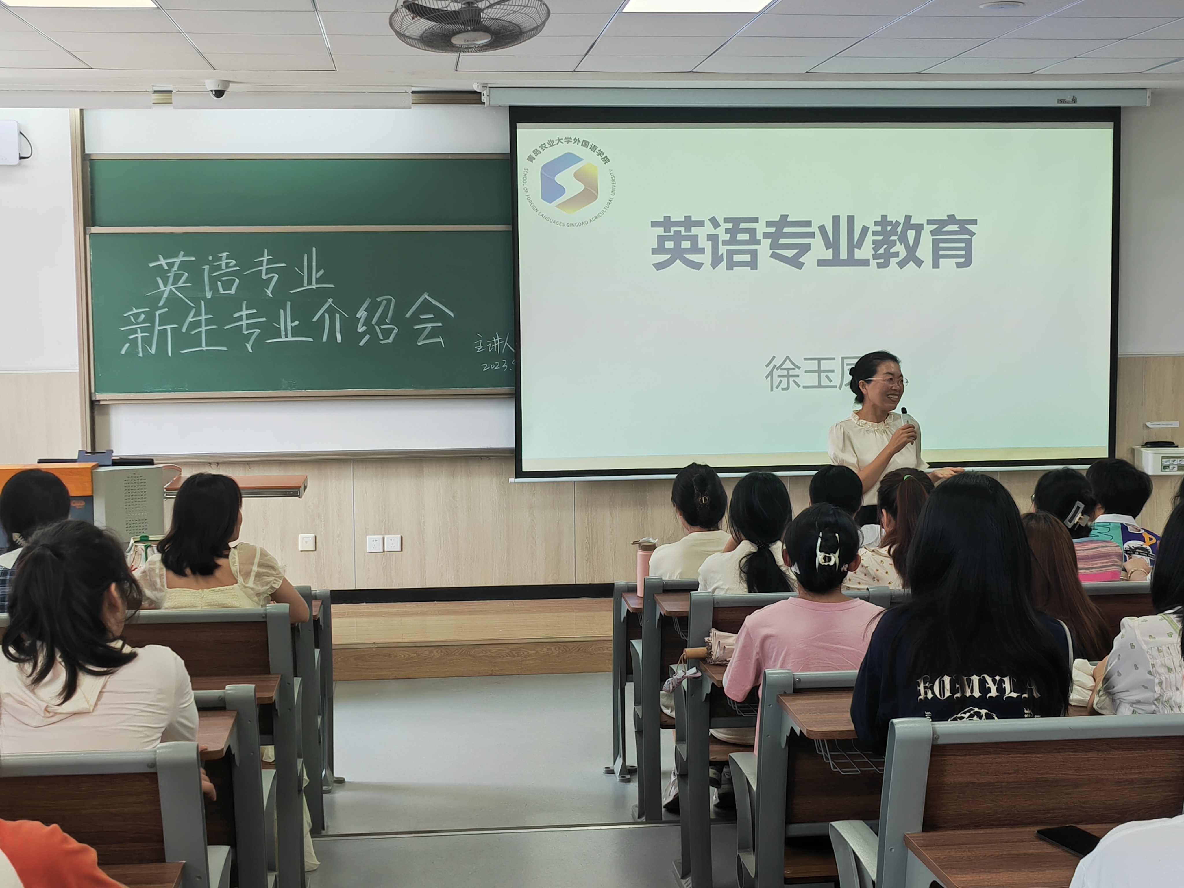徐玉凤从英语专业概况、人才培养方案、人才培养目标、专业课程设置等方面进行介绍,强调英语专业学生需从大一年级开始培养听、说、读、写四大基本技能,为自身英语素养打下坚实基础。