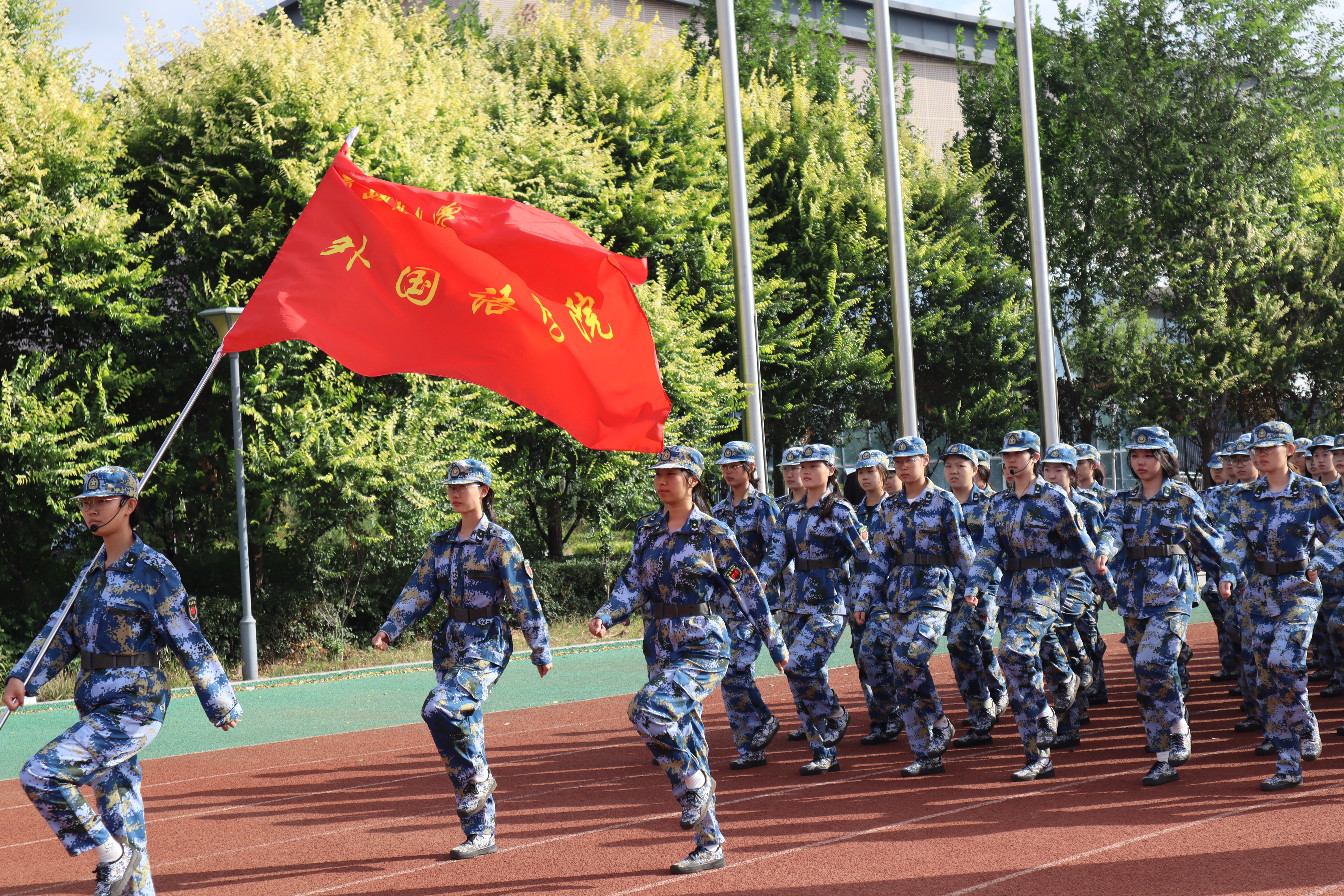 在为期十二天的军训中,学院新生们在教官的严格指导下,认真学习站军姿、踢正步、走队列等各项军事技能,在烈日下挥洒汗水,在风雨中坚守信念,克服了重重苦难,圆满完成军训各项任务。