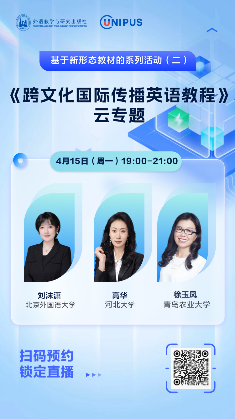 为深入贯彻落实习近平总书记关于教育的重要论述和党的二十大精神,办好人民满意的教育,进一步加强教学改革与研究,2024年4月15日,外研在线云端举办了“《跨文化国际传播英语教程》云专题——教学实践分析”活动,有近4000名教师在线观看了直播。本次活动的主讲教师为北京外国语大学的刘沫潇、河北大学的高华和永利官网永利集团官网入口的徐玉凤。三位教师分享了各自在使用《跨文化国际传播英语教程》过程中的教学研究与改革等方面的经验与做法,为跨文化类课程的教学和研究提供了示范和借鉴参考。