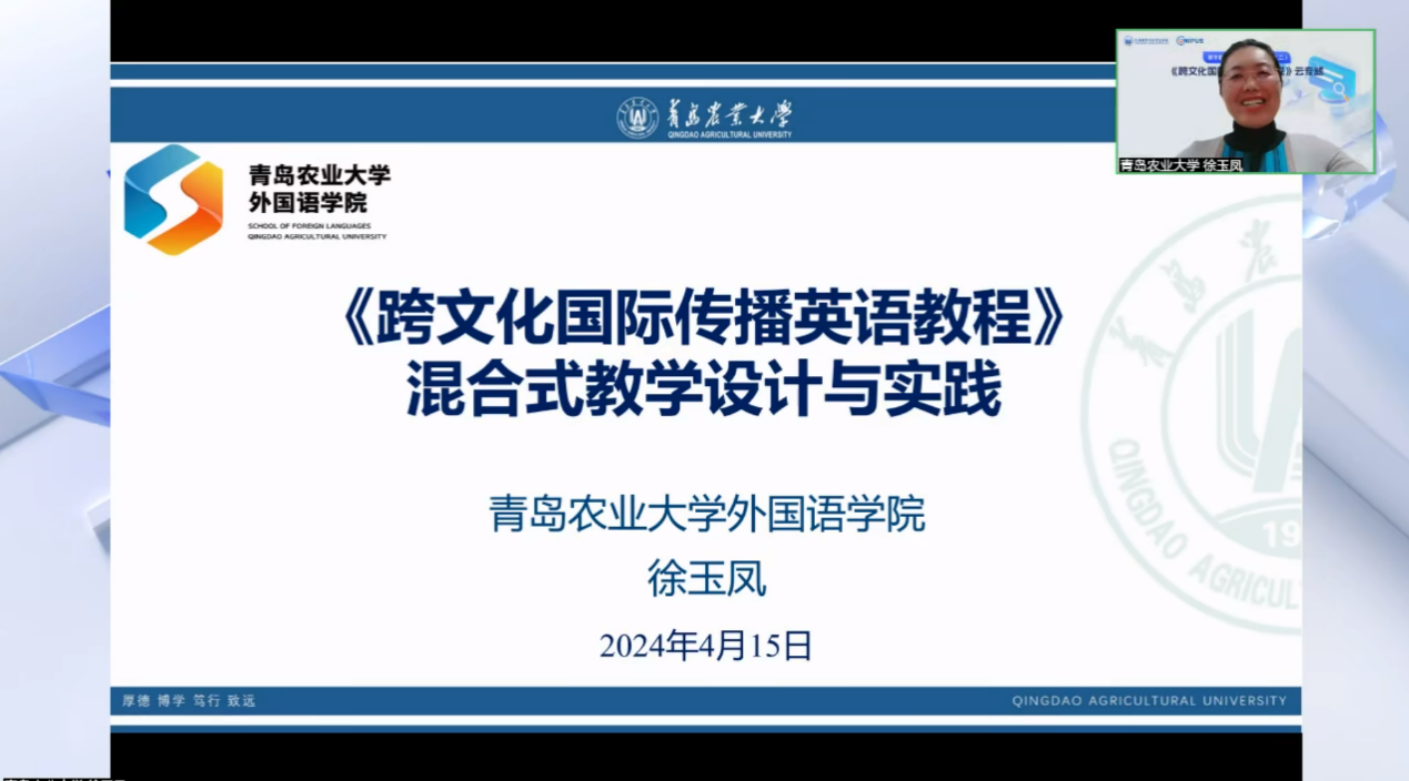 永利集团官网入口英语系主任徐玉凤受邀参加并做了题为“《跨文化国际传播英语教程》混合式教学设计与实践”的发言。