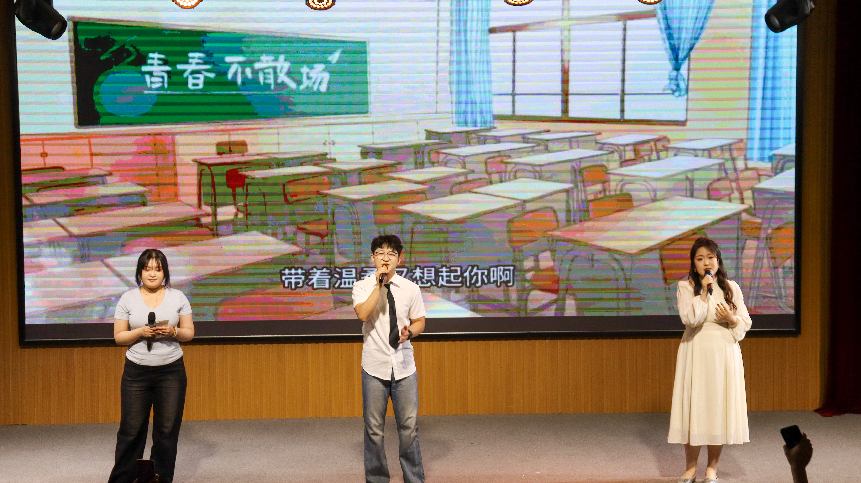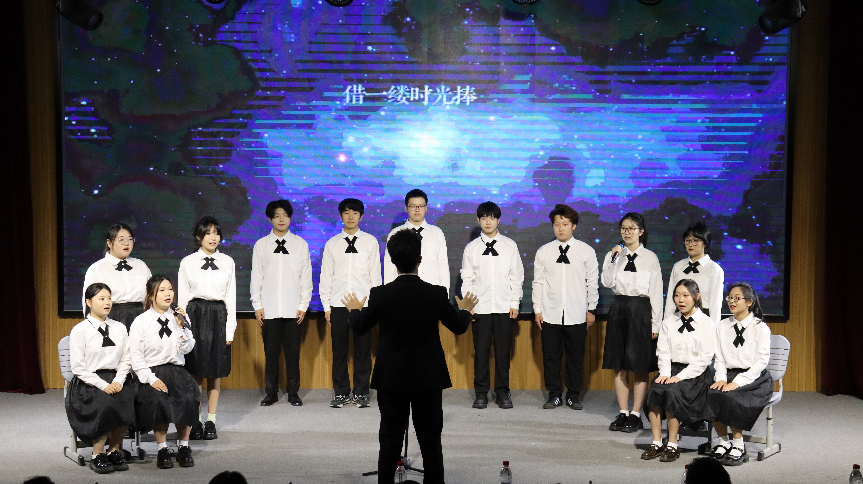 第二篇章“逐梦今朝·风华正茂”中,英文歌曲《Something Just Like This》邀请了留学生共同演绎;中国舞《月寄相思》用活泼轻快的舞姿表达了毕业生们对母校的深深眷恋;歌曲串烧《时光留声机》带领大家重温了大学四年的美好时光,引发了全场共鸣。