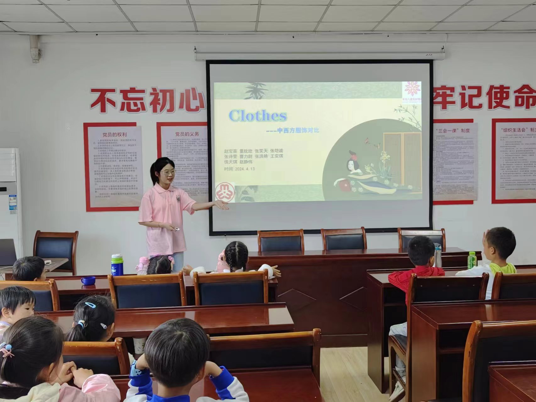 本次课堂的主题为中西服饰对比,把中国特色服饰与摩洛哥特色服饰相结合,让孩子们在不同的民族服饰中体验交流互鉴之美。授课开始前,志愿者用大家熟悉的汉服调动起小朋友们的学习兴趣。孩子们与志愿者积极互动赢取小贴画。随后以马面裙为例,带领孩子们感悟中华民族传统服饰的魅力,并将传统的马面裙与当下时尚的马面裙进行对比,呼唤传统文化与现代时尚“相遇”。