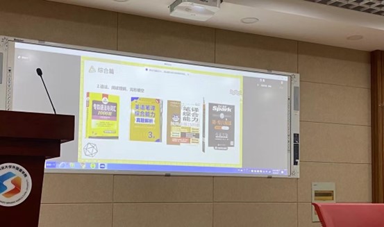 CATTI即“翻译专业资格(水平)考试”,是在全国实行的、统一的、面向全社会的、国内最具权威的翻译专业资格(水平)认证。会议主讲人婧越结合自身实践经验,围绕选书用书、题型分析、准备过程和考试技巧等方面展开分享,主要讲解了备考前的主要用书,重点题型及其占分比,准备过程中遇到的重难点、解决方式和技巧。全体研究生在会上认真地记录笔记,并在提问环节积极地提出疑惑。