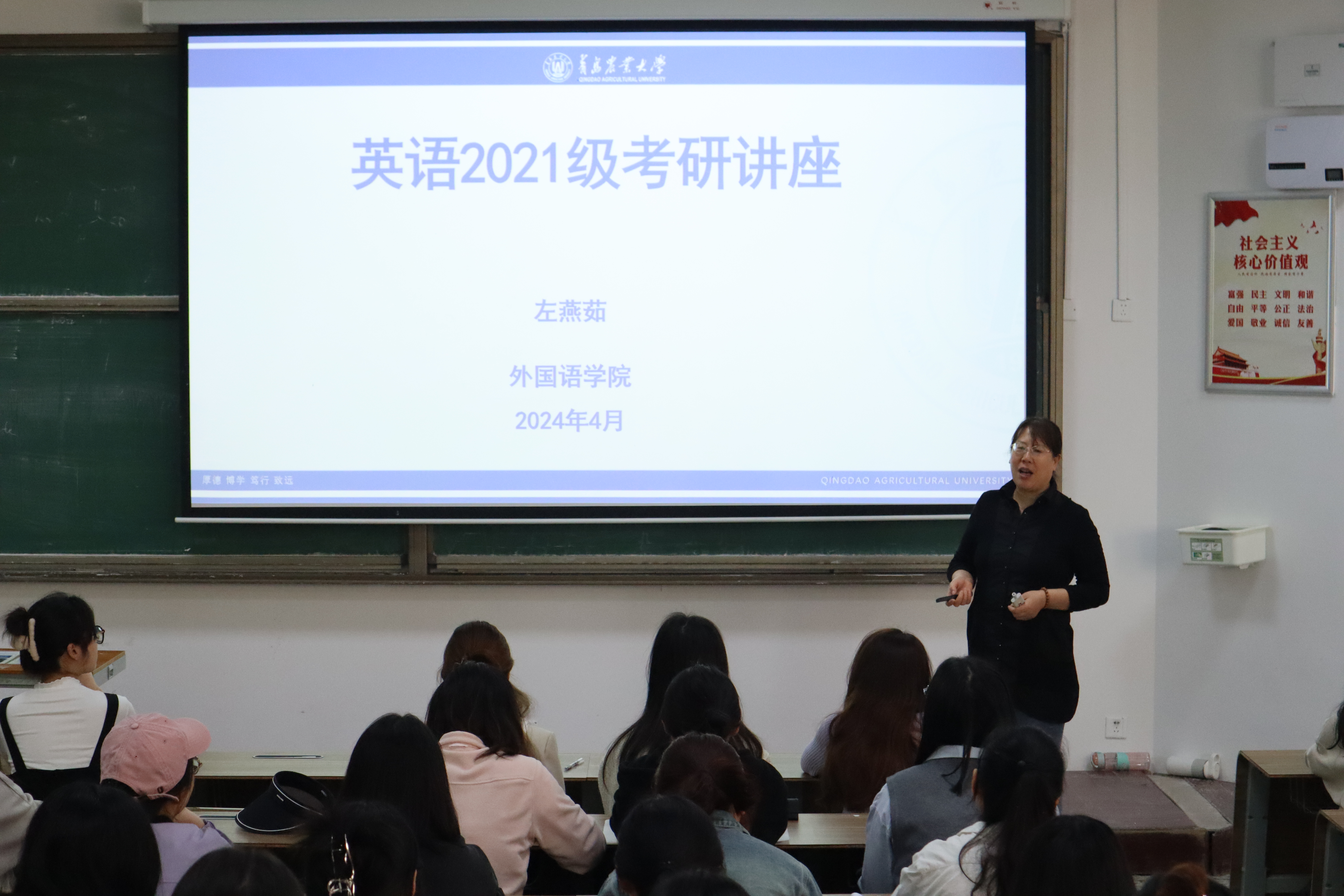 4月28日,永利集团官网入口英语系于教学楼B201举办考研动员指导会。会议由英语系主任徐玉凤、英语系副主任兼跨境电子商务方向负责人左燕茹主讲,并邀请中国科学院大学外语系副教授刘云龙、安帅对中国科学院大学研究生招生情况做了详细解读,英语系2021级近200名学生参会。