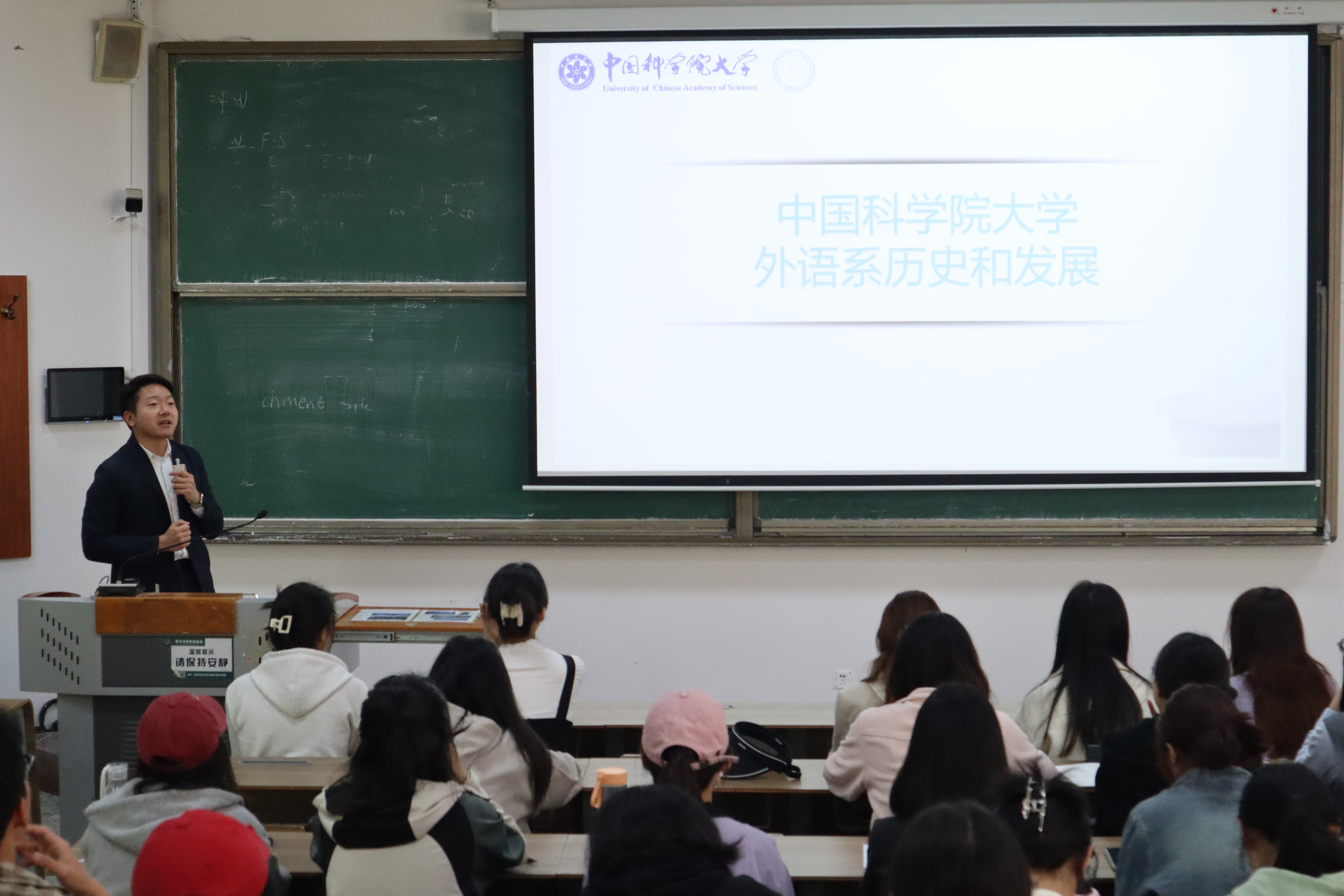 刘云龙、安帅围绕中国科学院大学外语系的历史和发展、招生专业、师资团队、教学水平等方面进行了研究生招生和培养情况的讲解。宣讲最后设置了答疑环节,在场同学纷纷进行提问,老师们进行了一一解答。