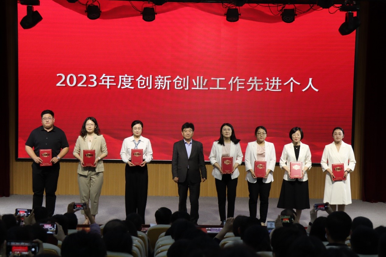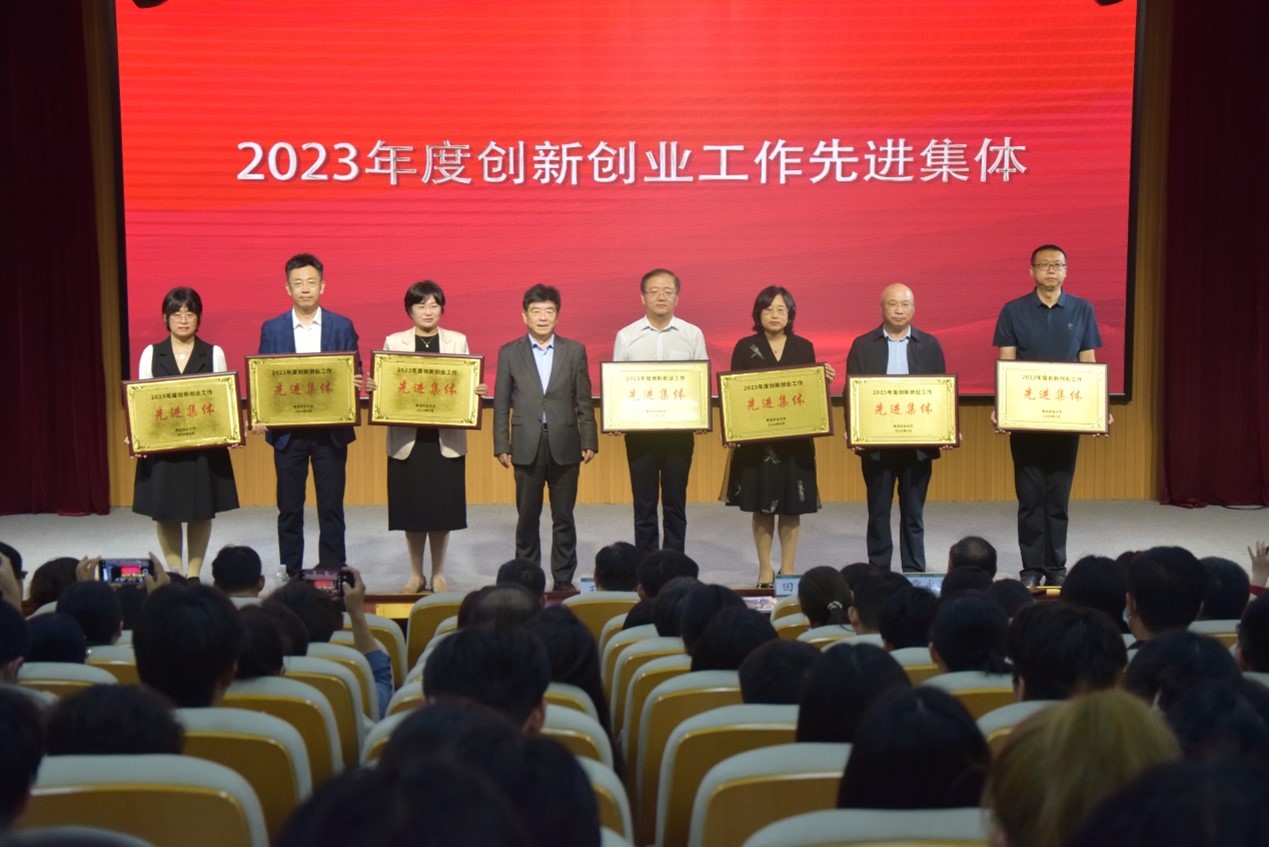 永利集团官网入口荣获2023年度创新创业工作先进集体,团委书记线郁获得2023年年度创新创业工作先进个人,田义轲副校长为获奖单位和个人颁发证书。