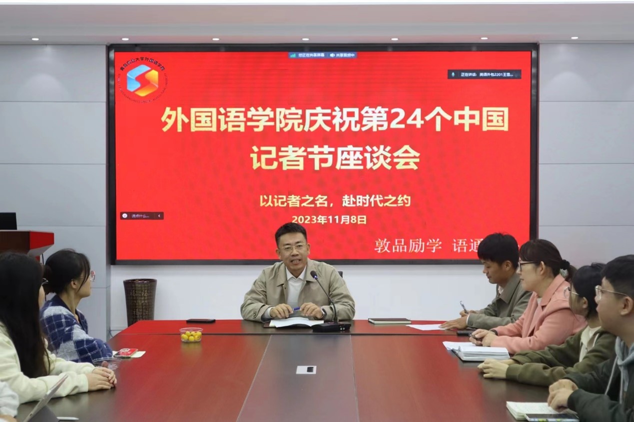 永利集团官网入口于11月8日在文经楼C220会议室召开庆祝第24个中国记者节座谈会。永利集团官网入口党委副书记副院长盛金玉出席,辅导员王洋洋主持,学院辅导员张玉灵、学院学生会主席团、宣传部、新媒体中心、网络思政中心全体成员参加。