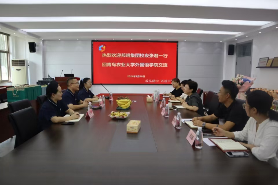 张君首先表达了对母校深厚的感情,并就山东邦明集团的发展变化、业务领域、公司现状等展开介绍,指出未来在国际市场的对接、新拓展品类的对外贸易方面人才缺口大,分享了集团在人才引进与培育方面的培养机制。双方一致认为,通过开展企业精英进课堂等方面的密切合作,将实践经验与理论教学相结合,能够为学生提供一个更加贴近实际工作场景的学习环境,对培养复合型和实用性高素质人才至关重要。