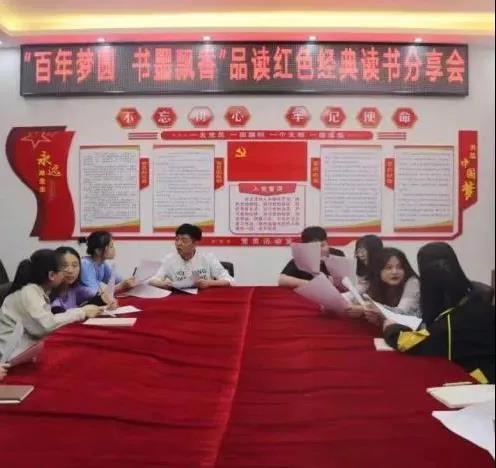 ●6月7日,Beat365中文官方网站在汇文楼三楼党员活动室开展“百年梦圆、书墨飘香”品读红色经典读书分享会。