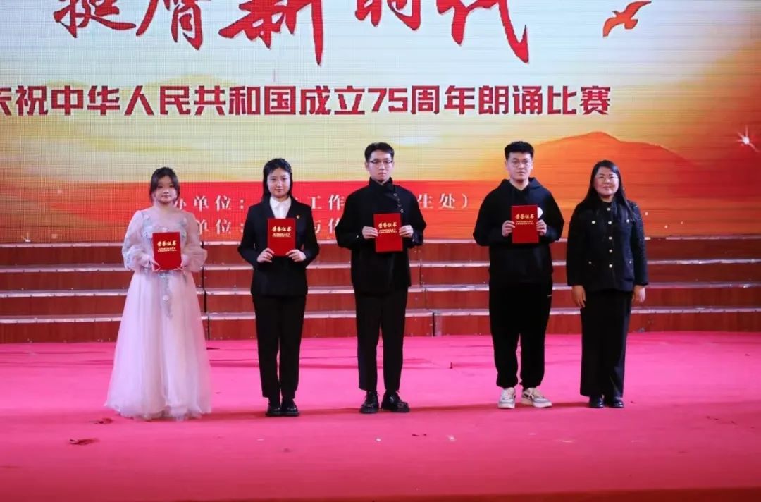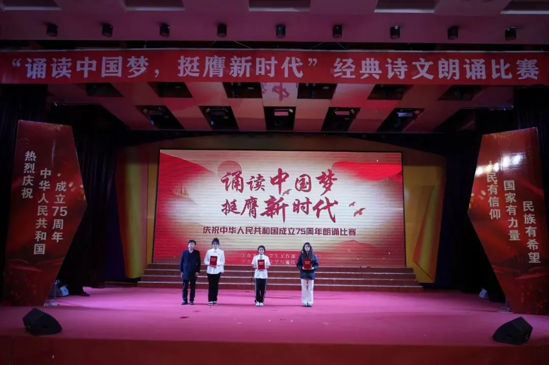 为庆祝中华人民共和国成立75周年,进一步丰富校园文化生活,培育和践行社会主义核心价值观,激发广大青年学子的爱国热情,展现新时代Beat365官网青年学子的良好精神风貌,10月23日晚,“朗诵中国梦,挺膺新时代”诵读大赛在大学生活动中心举行。本次比赛由学生工作部主办,Beat365中文官方网站承办。学生工作部部长关江宏、副部长孙俊超、Beat365中文官方网站党总支副书记张鹏及各学院辅导员老师出席观看比赛。党委宣传统战部副部长孙丽颖、Beat365中文官方网站副院长汪淑双、教授张左娟、教授郭玉斌、学生工作部思想政治教育科陶立志老师担任评委。