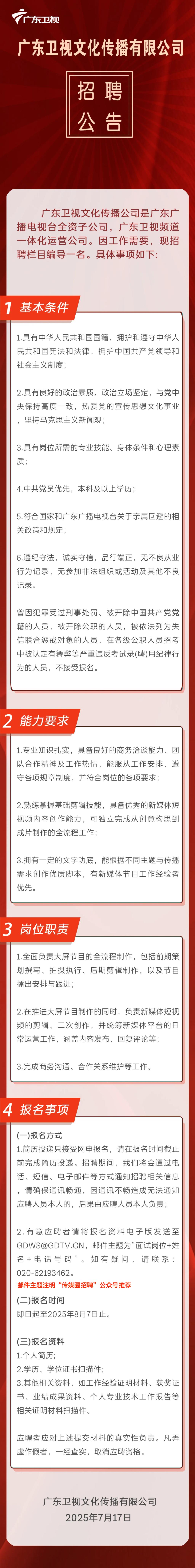 就业指导丨广东卫视文化传播招聘栏目编导!