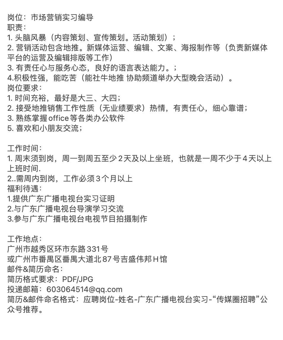就业指导丨广东广播电视台少儿频道招聘编导实习生!