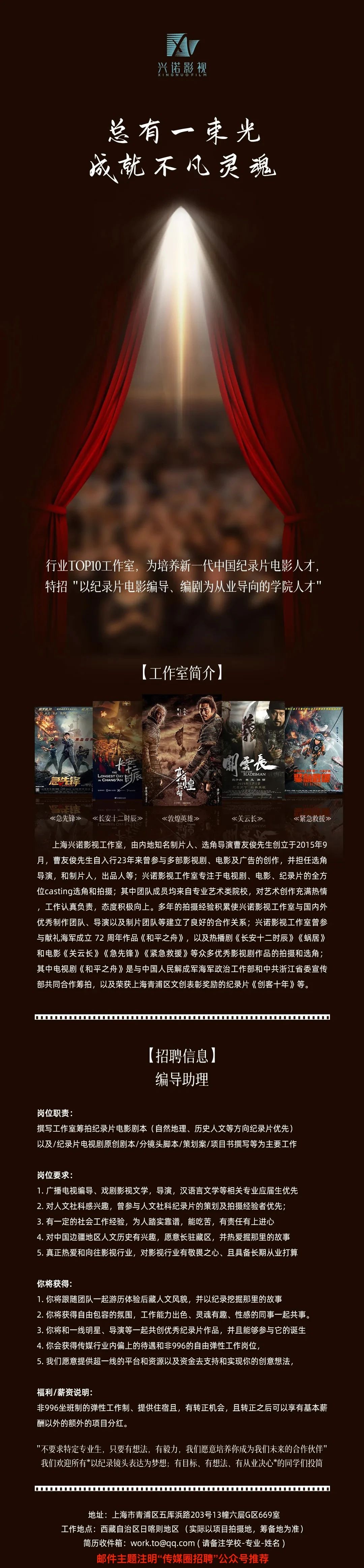 就业指导丨兴诺影视招聘编导助理!
