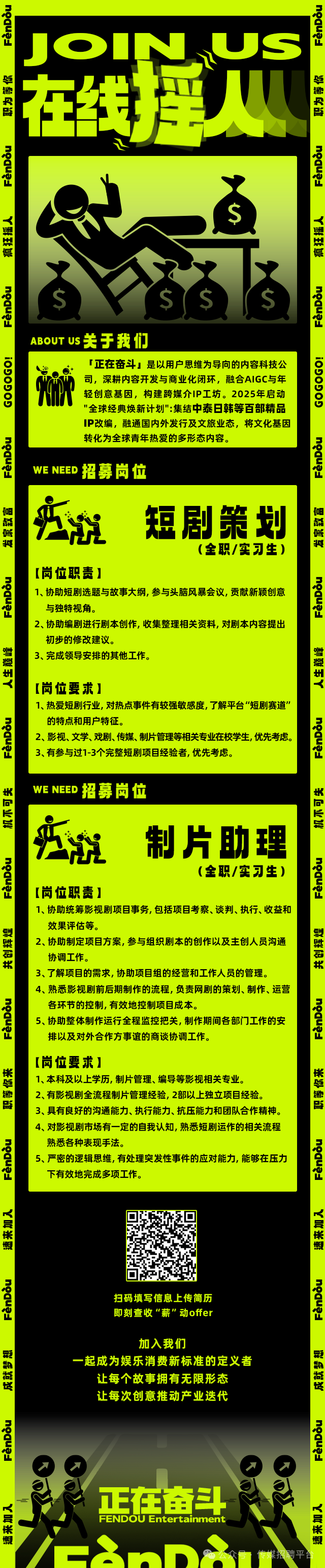 就业指导丨正在奋斗招聘短剧策划、制片、导演、剧组财务等多个岗位,可实习