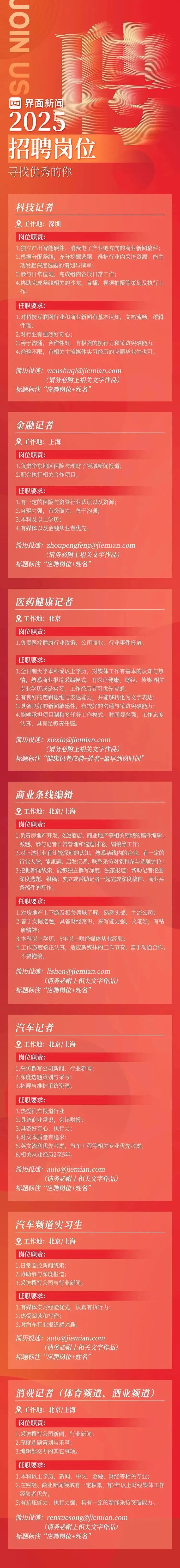 就业指导丨界面新闻招聘科技记者、金融记者、医药记者、汽车记者、消费记者等