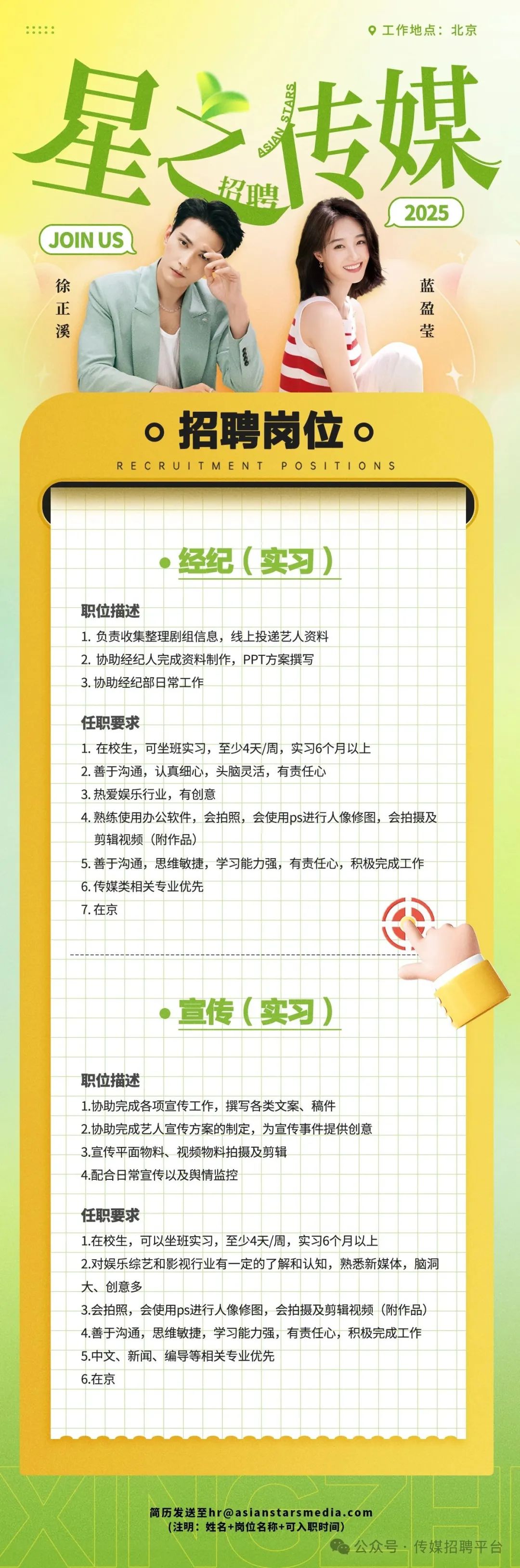 就业指导丨星之传媒招聘经纪实习生、宣传实习生