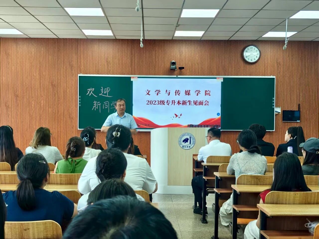8月27日下午,Beat365中文官方网站在汇文楼313教室召开2023级专升本新生见面会。党总支书记王子鸣出席会议并讲话,2023级辅导员于小庆主持会议,四位代班及2023级专升本全体新生参加会议。