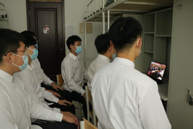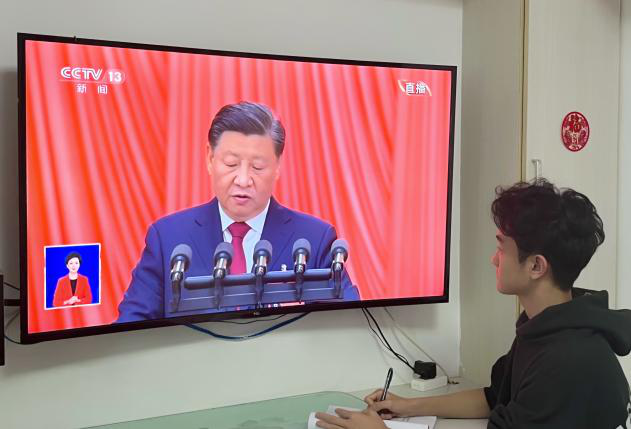 Beat365中文官方网站党政领导班子成员、辅导员及学生党员代表在汇文楼326会议室集中观看开幕会;36名学生代表在313教室收看开幕会;其余在校和居家师生通过广播、电视、网络等方式收听收看党的二十大开幕会直播盛况。