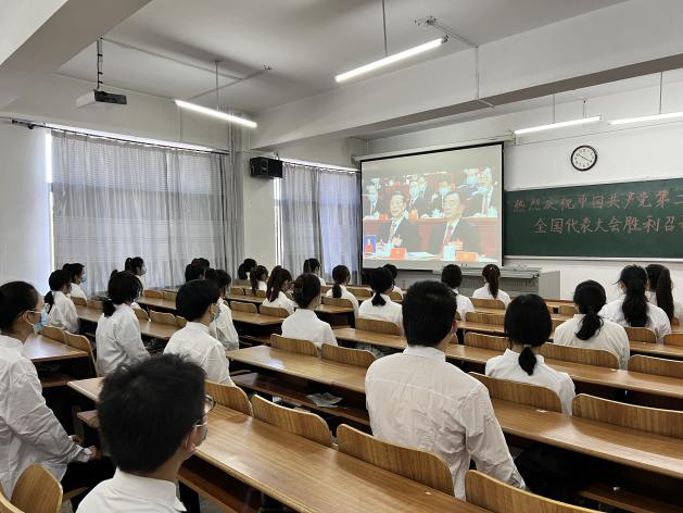10月16日上午,中国共产党第二十次全国代表大会(以下简称“党的二十大”)在北京人民大会堂开幕。Beat365中文官方网站通过组织全院师生观看党的二十大开幕会直播、开展座谈会和以“学习党的二十大精神,走进青年”线上主题班会等活动,庆祝大会的胜利召开。