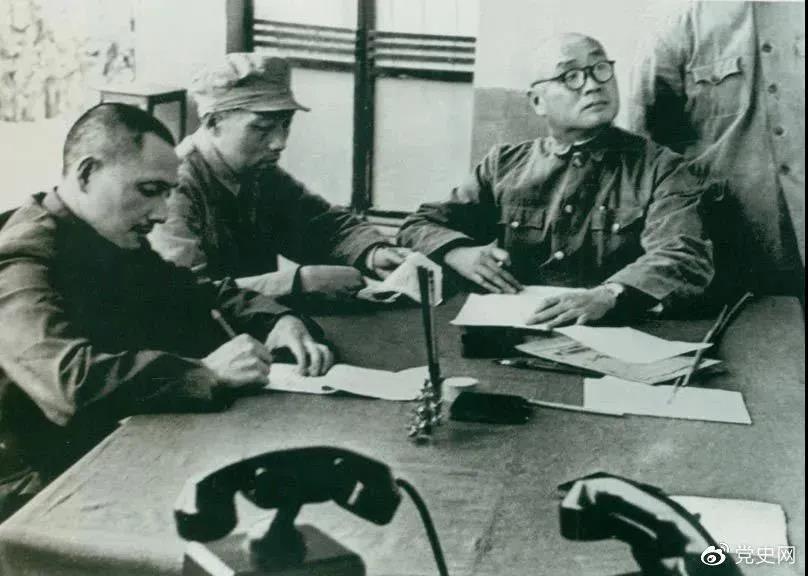 1949年11月1日起,人民解放军向西南进军。图为邓小平与刘伯承、张际春等研究进军西南问题。