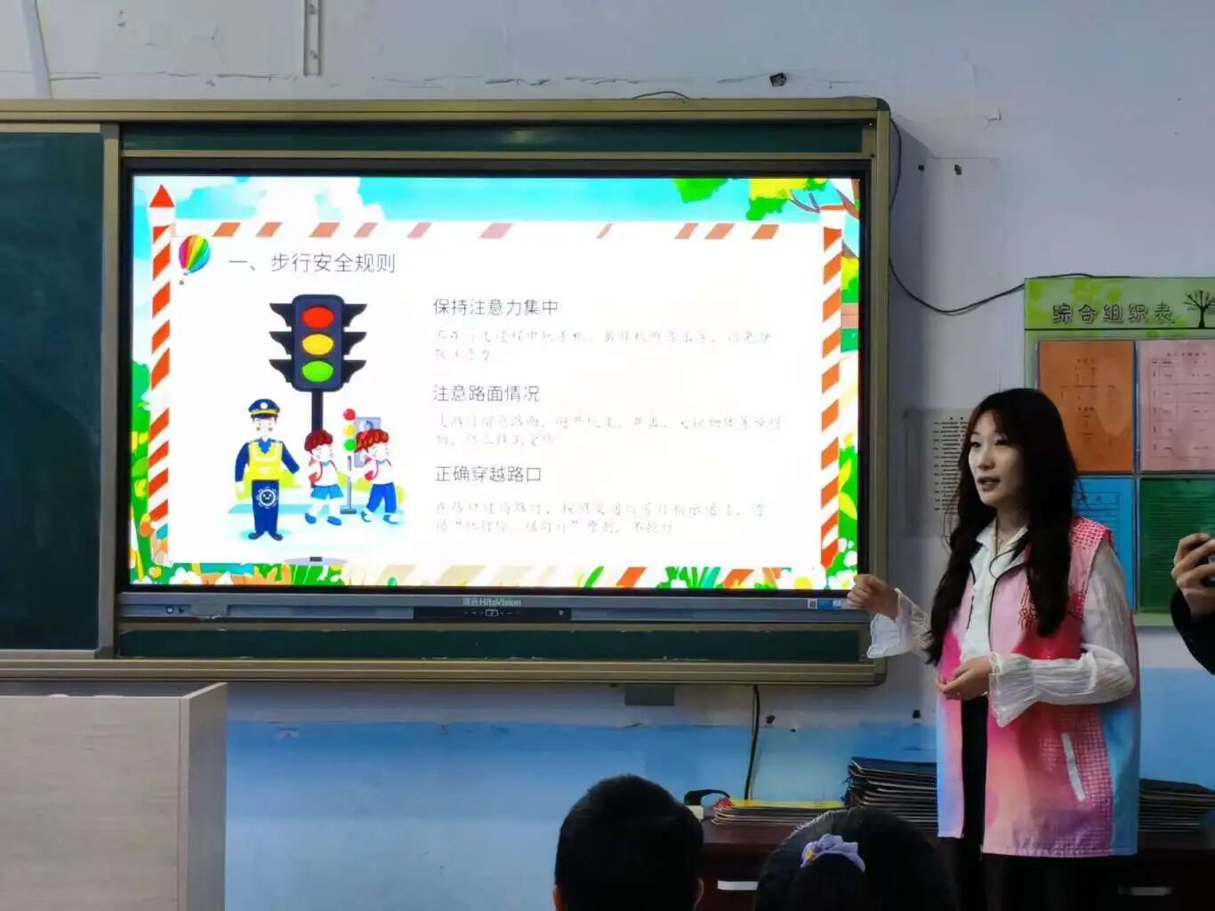 活动中,团总支社会实践与志愿者工作部孙永莲同学以《校园安全教育》为题,为孩子们带来了一堂生动且实用的安全知识讲座。结合小学生的认知特点,通过PPT展示、案例分析、现场提问等多种形式,围绕网络安全、交通安全、寝室安全、校园日常防护以及食品安全等与日常学习生活息息相关的安全知识进行了深入浅出地讲解。在互动问答环节,孩子们热情高涨,纷纷举手抢答。答对的同学不仅感受到了成功的喜悦,还获得了志愿者们精心准备的精美文创纪念品,现场气氛热烈。